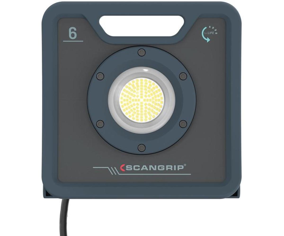 Weitere technische Eigenschaften · Lichtfarbe: 5700K · prüfpflichtig: ja · Aufprallschutz: IK07 · Betriebstemperatur: -25 to +40Grad Celsius · CRI Haupt: Ra > 80 · Einstellbare Lichtleistung Main: 6 level · Kabel: 196.9 in / H07RN-F 3G1.0 mm2 · Lichtquelle Haupt: High efficiency multi-LED design with 120 LEDs · OPTILight-Einstellung: 200 lux@2 m (EN-12464-2) · Strahlwinkel Haupt: 110Grad · Stromquelle: Cable · LED-Strahler NOVA 6 41 W · 600-6000 lm 5m H07RN-F · 3G1mm² IP67 SCANGRIP