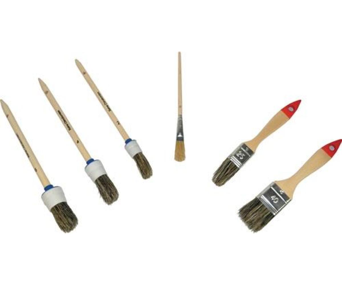 Weitere technische Eigenschaften · Qualität: gute Qualität · Pinselset Inh.6tlg.gute · Qual.NÖLLE · Inhalt: je 1 Malerringpinsel (Gr. 2 / 4 / 6), je 1 Lackierpinsel (25 / 40 mm), 1 Emaille-Lackpinsel (Gr. 03) ·