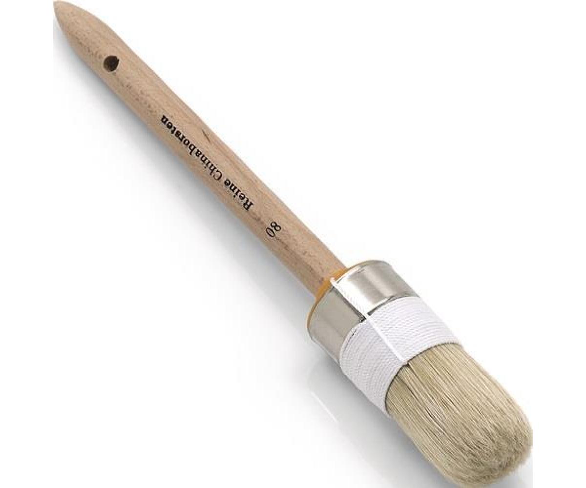 rund · beste helle Chinaborsten · auf Schluss gearbeitet · hitzebeständig · lösungsmittelbeständig · doppelter Fadenvorband · Nickelring · roher Holzstiel - für höchste Ansprüche