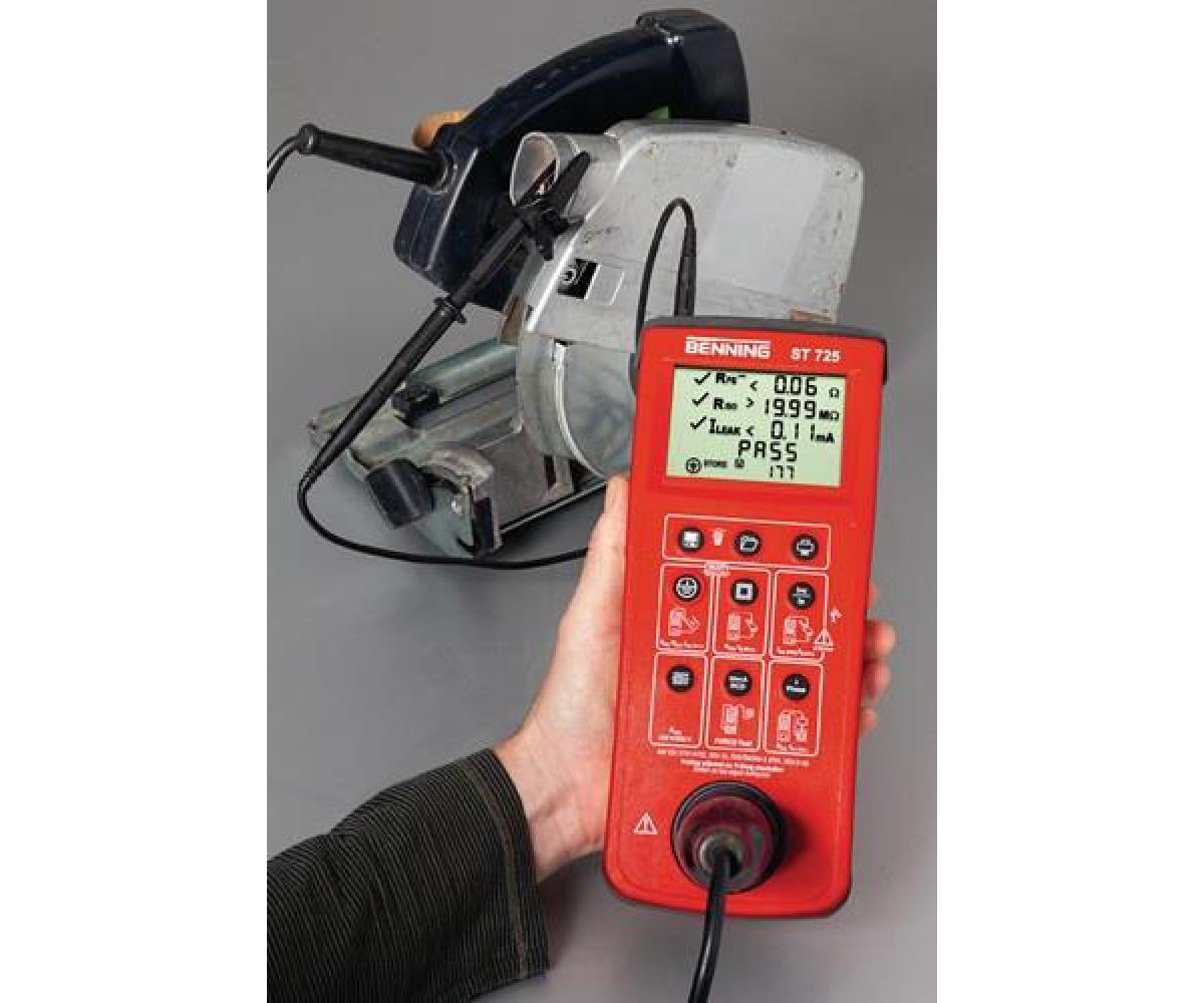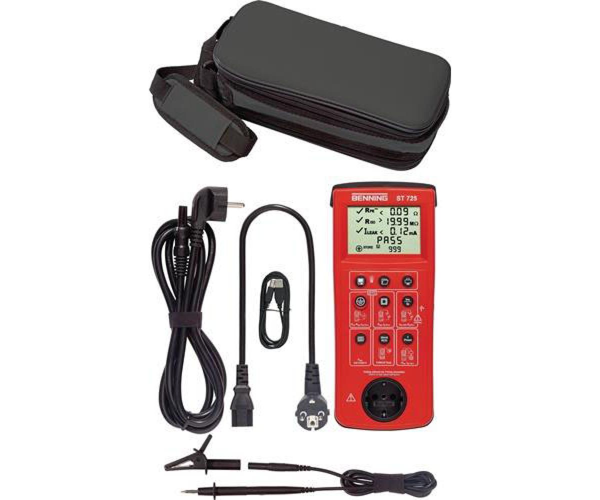 geeignet für Elektrotechnik, Industrie, Instandsetzung, Service, Kommunen (einfache Handhabung, für batterie- und netzbetriebene Prüfungen) Anwendungsbereiche: Prüfung von Geräten mit netzspannungsabhängigen Schaltelementen/Netzteilen/Relais, wie elektronisch gesteuerte Geräte/Werkzeuge · Geräte der Informations- und Kommunikationstechnik sowie Geräten, die nur mit Netzspannung vollständig geprüft werden können, DIN EN 50678 (VDE 0701), DIN EN 50699 (VDE 0702), DGUV Vorschrift 3 · Messwertspeicher für 999 Prüfobjekte, auslesbar über Micro-USB-Schnittstelle · Downloadsoftware zur Prüfprotokollerstellung in MS Excel · Direkte Prüfprotokollerstellung über serielle Schnittstelle und optionalen Drucker BENNING PT 2 · Integrierte Echtzeituhr zur Speicherung der Messwerte mit Prüfdatum · Schnell (Prüfung innerhalb weniger Sekunden), komplett (Gerätetester und FI/RCD-Tester in einem Prüfgerät), einmalig (Prüfung 1- und 3-phasiger Geräte unter Funktionsbedingungen) · Automatischer Prüfablauf mit gut-/ schlecht Anzeige für Geräte der Klasse I, II (III) und Leitungstest · Aktive Prüfung 3-phasiger Geräte unter Funktionsbedingung (optionale Messadapter) · Grenzwerte gemäß VDE-Norm voreingestellt · Batteriekapazität für 2500 Prüflinge · Gewicht: 950 g Messungen: Schutzleiterwiderstand (200 mA Prüfstrom mit Polaritätsumkehr), Isolationswiderstand (250 V/ 500 V Prüfpannung), Prüfung 30 mA FI/RCD/PRCD-Schutzschalter (Auslösezeit bei 1 x und 5 x Nennstrom), Spannung an externer Schutzkontaktsteckdose Netzbetrieb: Schutzleiter-/Berührungsstrom über Differenzstrom-/ direktes Messverfahren mit automatischer Netzumpolung Batteriebetrieb: Schutzleiter-/ Berührungsstrom über Ersatzableitstromverfahren