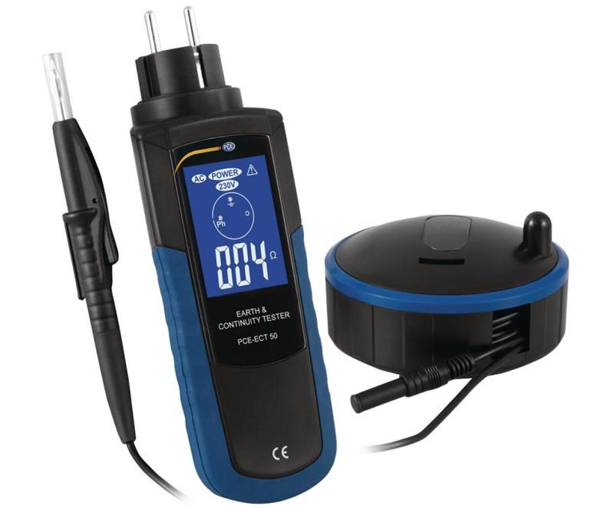 handlich · durch die robuste und ergonomische Bauweise kann der Verwender komfortabel mit dem Erdungsmessgerät arbeiten · der Erdungswiderstand kann schnell ermittelt werden · zusätzlich dazu kann eine Prüfung erfolgen, ob die Erden miteinander verbunden sind · um eine klare Ablesung zu garantieren, verfügt das Erdungsmessgerät über ein großes, übersichtlich gestaltetes, mehrfarbiges LC-Display · das Display gibt ebenfalls eine visuelle Rückmeldung über den Zustand der Installation · wenn die Installation in Ordnung ist, bleibt das Display blau · bei einer fehlerhaften Installation wechselt das Display in einen roten Hintergrund · das Erdungsmessgerät besteht aus einer Ableseeinheit, die als Ganzes in die Steckdose gesteckt wird und einer Sicherheitsprüfspitze, die über die Unterseite mit der Ableseeinheit verbunden wird · die Sicherheitsprüfspitze hat eine Kabellänge von etwa 7 m Merkmale: - Messbereich: 0 … 2000 O - Messprinzip: Durchgangsprüfung / Erdwiderstandsmessung - mehrfarbiges, hintergrundbeleuchtetes LCD - Installationskategorie III - 50 / 60 Hz Betriebsspannung