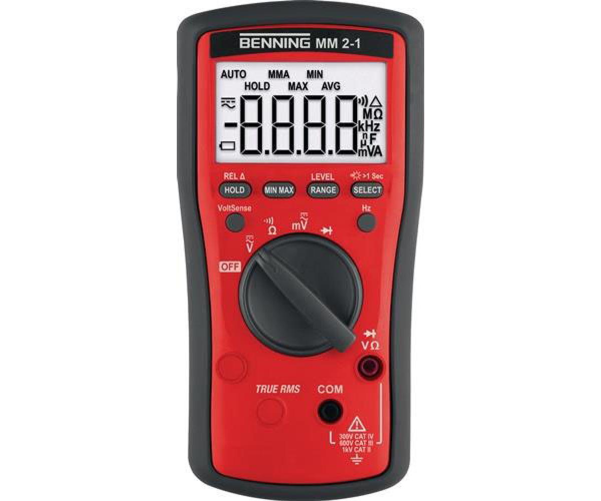 Weitere technische Eigenschaften · Breite: 50mm · Länge: 161mm · Höhe: 80mm · Multimeter MM 2-1 0,1 · mV-1000 V AC,0,1 mV-1000 · V DC TRUE RMS BENNING