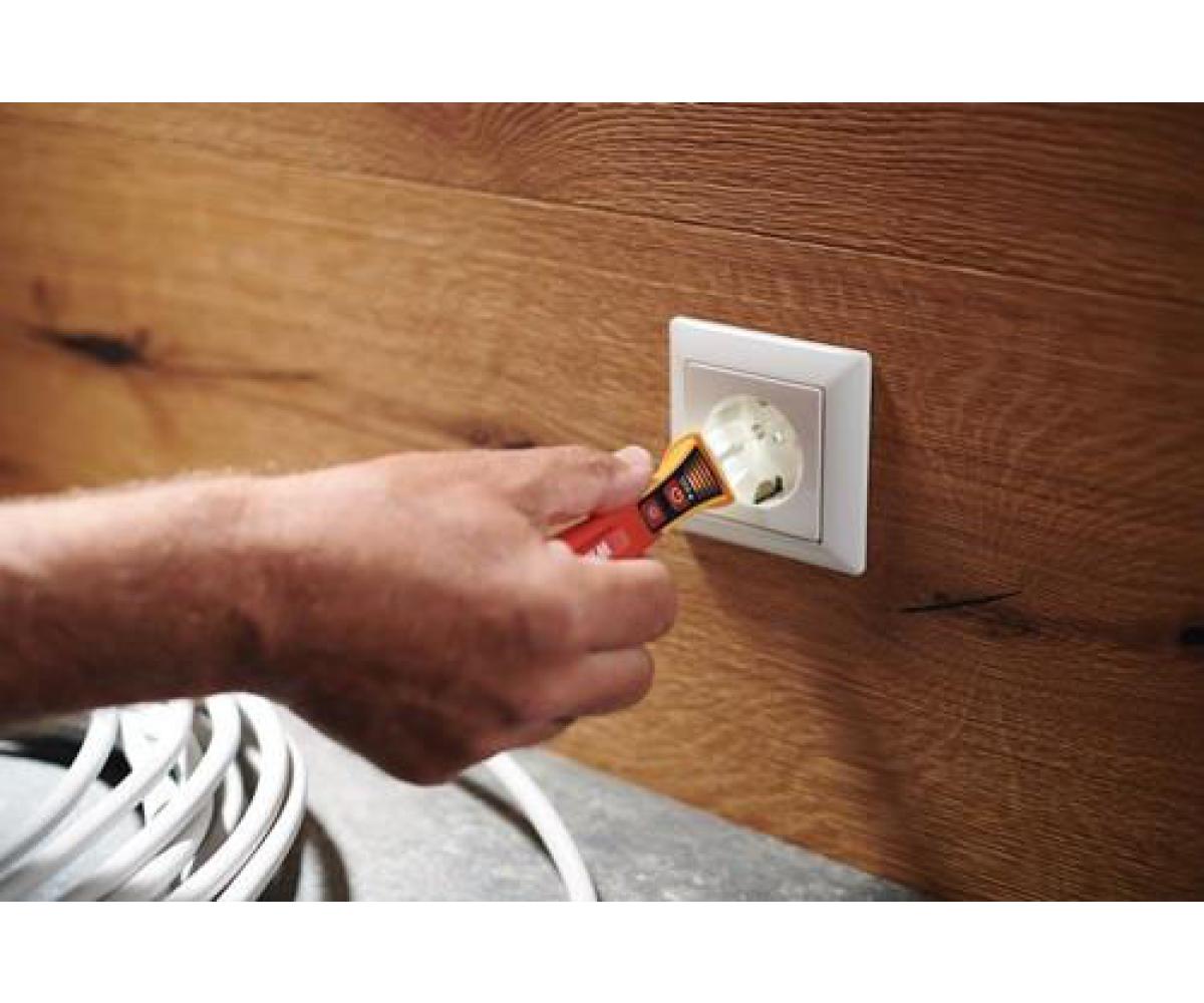 berührungslos prüfend · erkennt Wechselspannungen ohne Stromfluss · zum Erkennen und Lokalisieren von spannungsführenden Leitern, Kabelunterbrechungen und -brüchen, durchgebrannten Sicherungen, defekten Lampen an Lichterketten sowie Einzellitzen-Erkennung eine permanent grün leuchtende LED zeigt nach dem Einschalten die Funktionsbereitschaft an · bei der Spannungsprüfung wird eine Spannung durch eine rote LED angezeigt · Abschaltautomatik nach 4 Minuten Nichtbenutzung · international angepasste Messspitze · mit Ansteckclip Norm EN 61010-1 / IEC 61326 - CAT IV 1.000 VAC