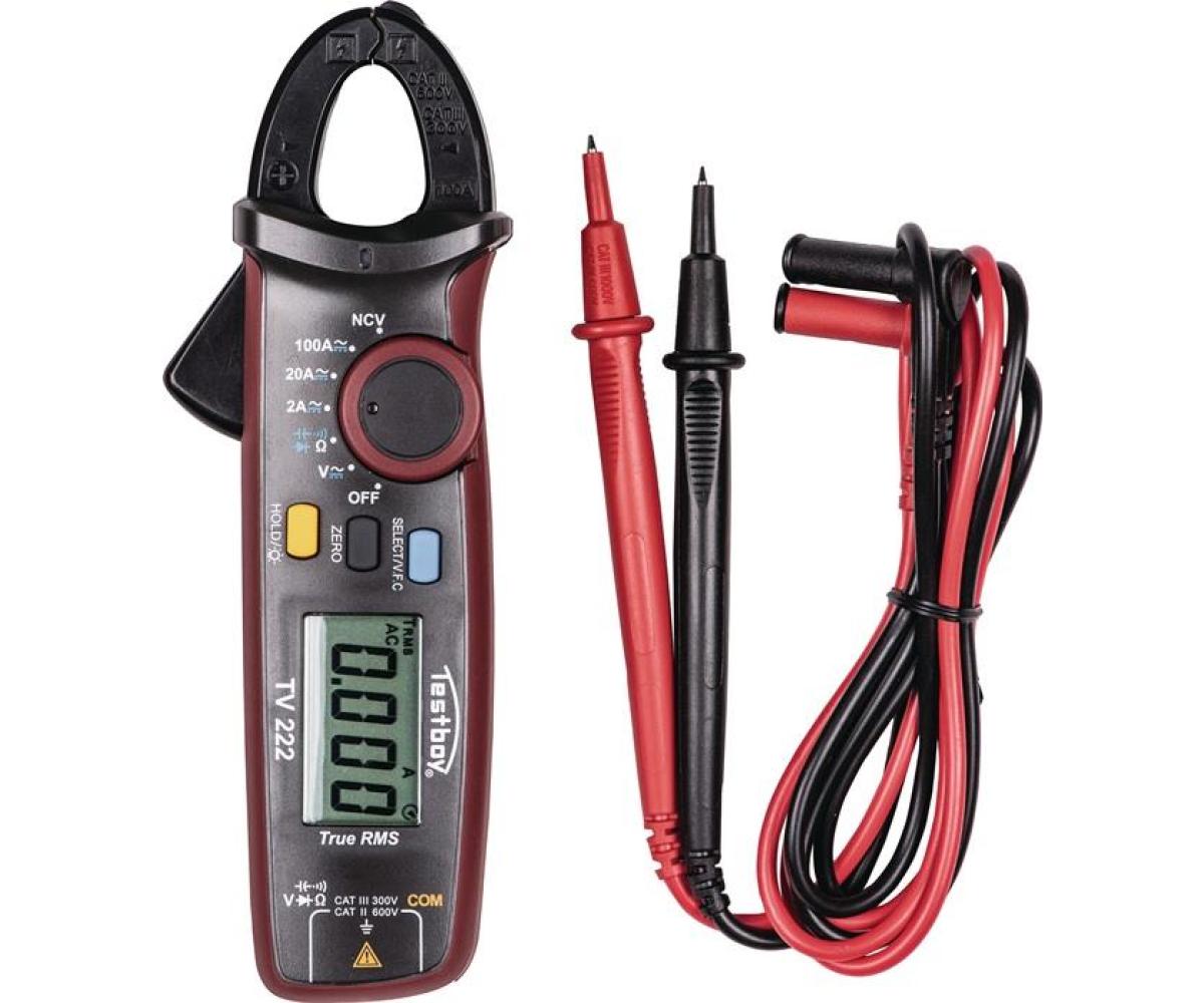 Weitere technische Eigenschaften · Höhe: 30mm · Zangenöffnung: 17mm · Breite: 55mm · Länge: 170mm · prüfpflichtig: ja · Zangenamperemeter TV 222 · b.100 A AC/DC,bis 600V · AC/DC CAT III 300V CAT II