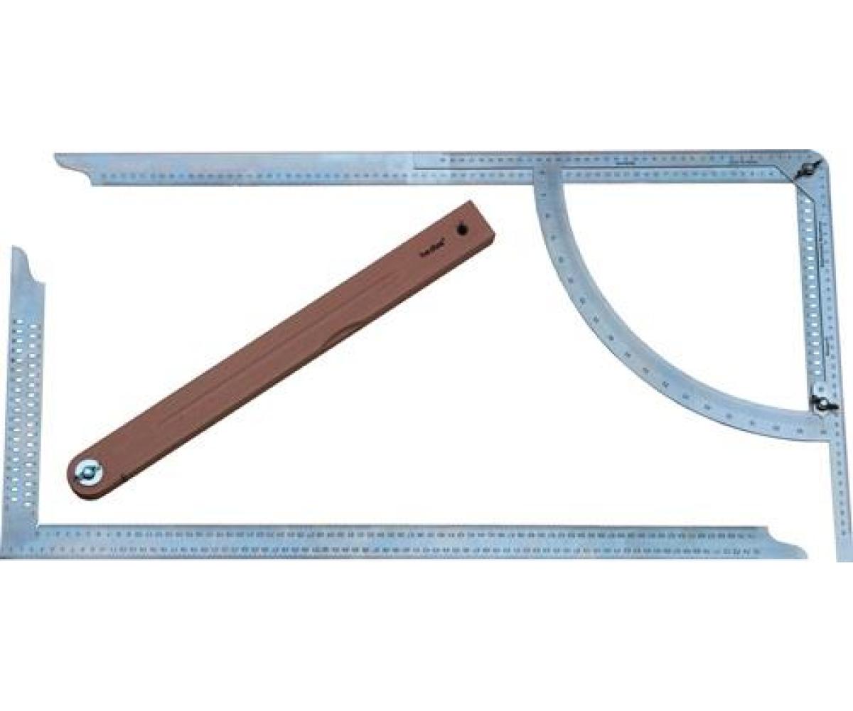 mit Anreißgerät Alpha Classic · Edelstahl rostfrei · geätzte Skalen · Winkel und Viertelkreis nahtlos geschweißt aus Federbandstahl · mm-Skalen auf dem Waage- und Senkelriss mit Zimmermannswinkel · Edelstahl rostfrei · nahtlos · Genauigkeit des rechten Winkels 0,005 mm pro cm Schenkellänge mit 500 mm Buchenholzschmiege · mit Langloch in der Zunge