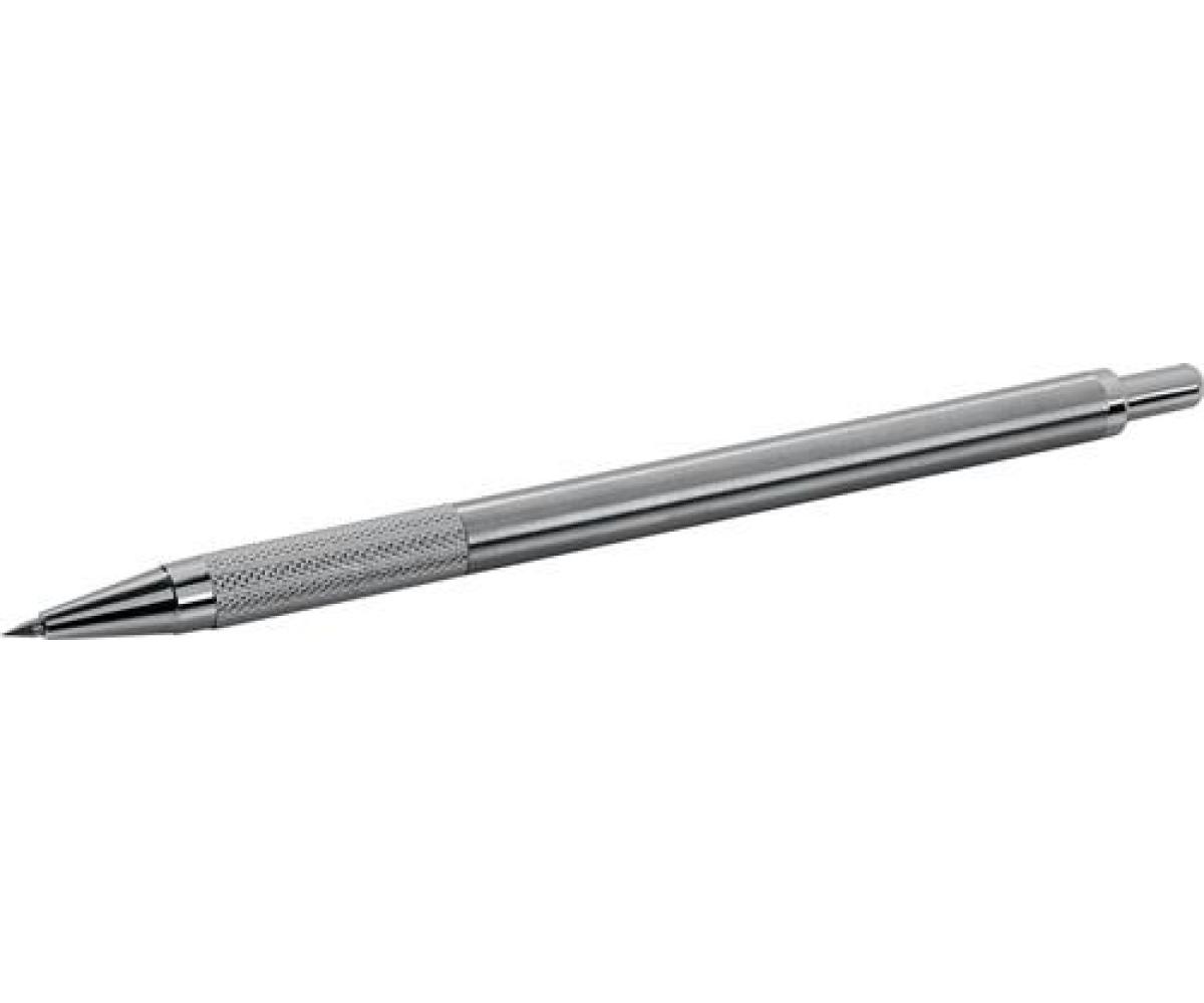 Nadel aus Hartmetall · stabile Metallausführung mit Ansteckclip · mit gerändelter Fläche für guten Griff und Anreißdruck-Übertragung · Nadel versenk-, nachschleif- und auswechselbar · konturenscharfe Anrisse auf Werkstoffen bis HRC 60 · bestens geeignet für den Werkstatt-Einsatz
