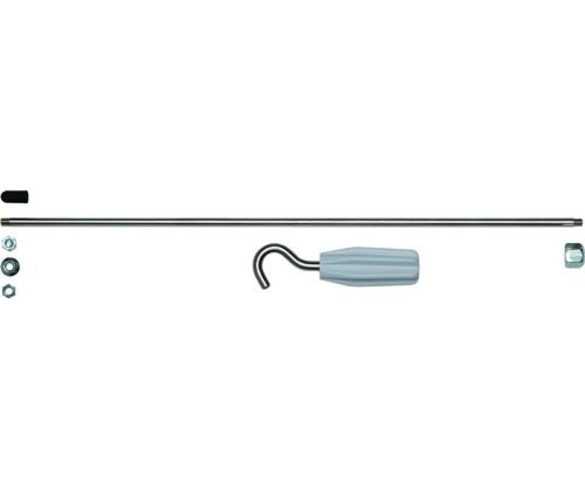 Bestehend aus: Druckstab Ø 5 x 360 mm, mit beidseitigem M5 x 5 mm, mit 4 verschiedenen Kraftaufnahmen (M5), Hakenschraube M6, Griff, Hutmutter (M8) anstelle des HakensTechnische Daten