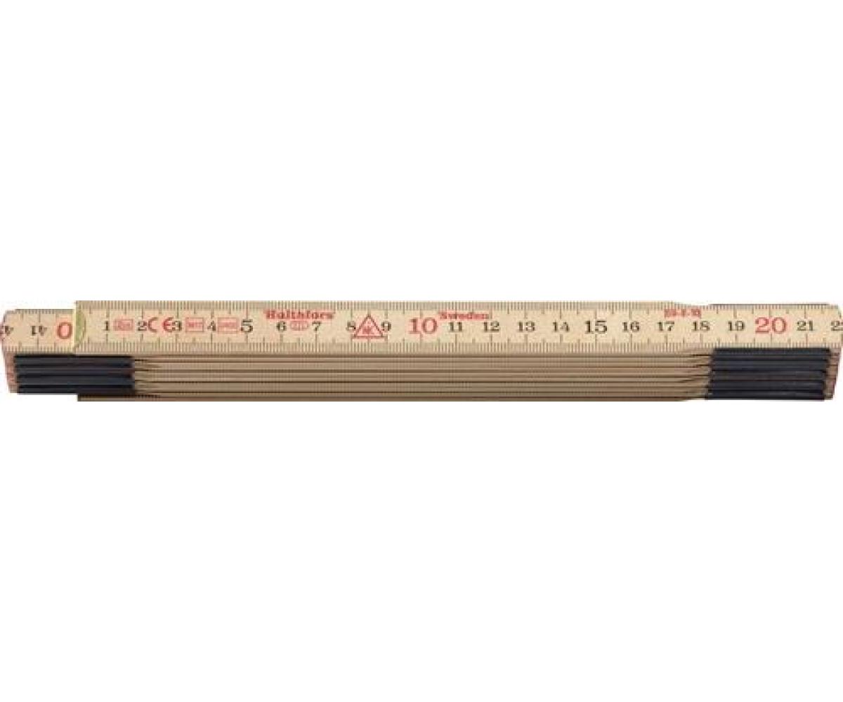Schwedenmeter · aus schwedischer Glasbirke · mit verdeckter Gliederverbindung · gute Ablesbarkeit durch schwarz-rote Duplexteilung · natur lackiert