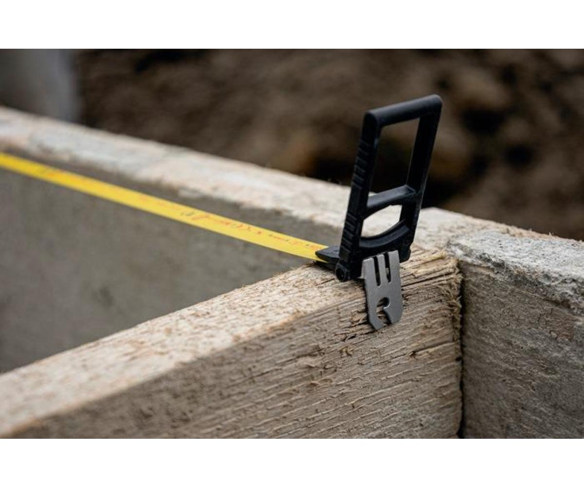 bruchsicheres PC/ABS-Gehäuse · knicksicheres Glasfaserband mit metrischer Skala · Universalhaken · variable Befestigungsmöglichkeiten dank ausklappbarem SPIKES-Haken - für sicheren Halt beim Ziehen des Bandes · integrierte Nagel-Öse im Haken · Kunststoffring: einfaches Hinzurechnen zur gemessenen Länge - 2 cm zwischen Nullpunkt und Nagelkerbe, 5 cm zwischen Nullpunkt und Ringanfang · Nullpunkt ist am Anfang des Bandbeschlages