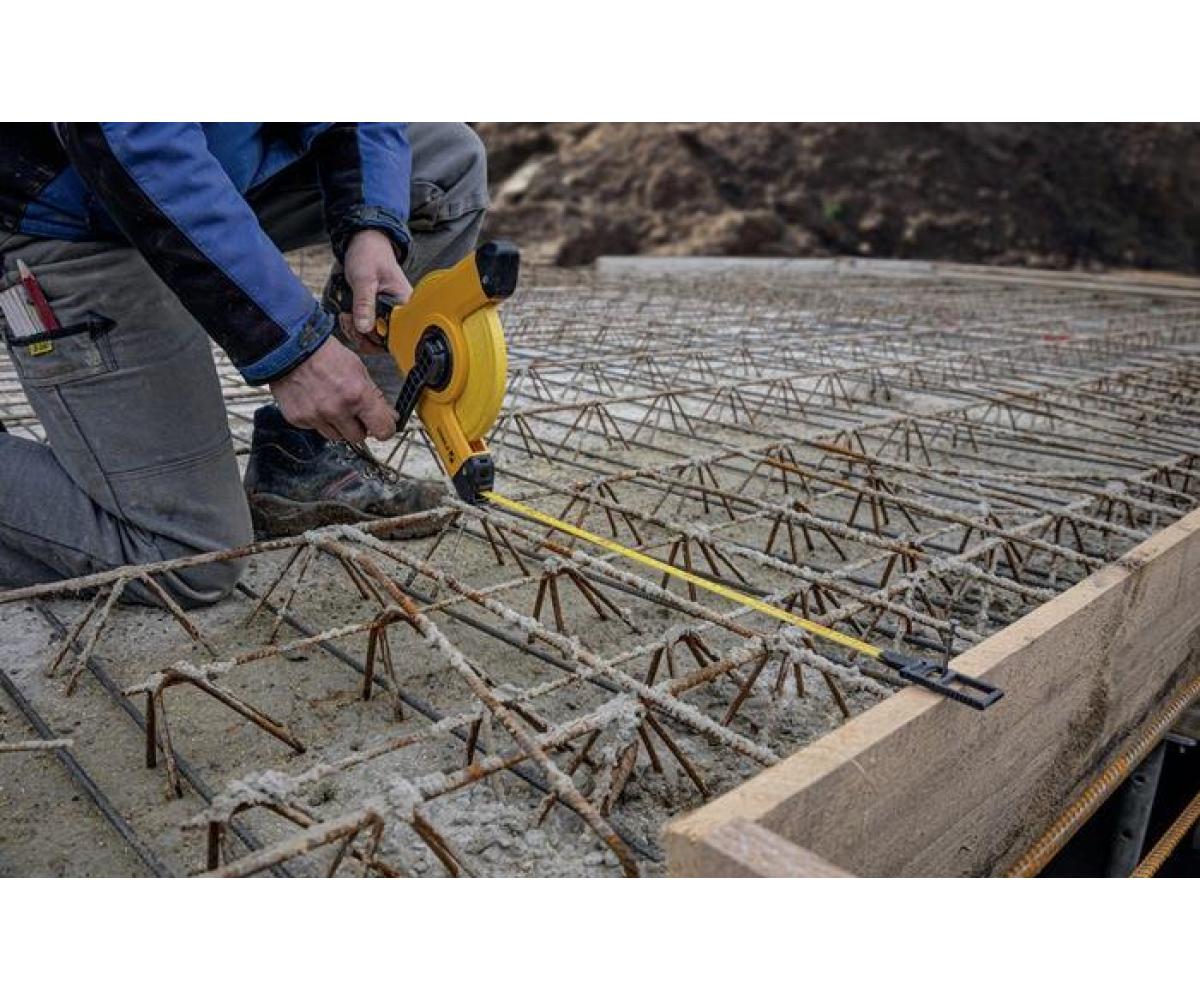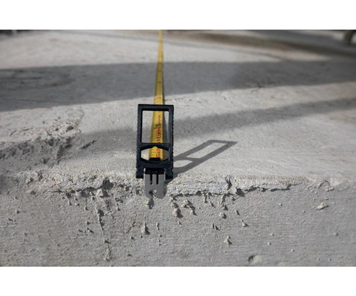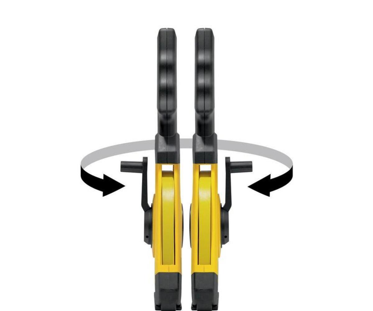 Y-Rahmen · Stahlband mit metrischer Skala · einfacher Wechsel der Kurbel von Rechts- auf Linkshänderbetrieb · ergonomischer Softgrip-Handgriff · extrem widerstandsfähige Ummantelung schützt das Band vor Korrosion und Abrieb · Universalhaken: variable Befestigungsmöglichkeiten dank ausklappbarem SPIKES-Haken - für sicheren Halt beim Ziehen des Bandes · integrierte Nagel-Öse im Haken · Kunststoffring: einfaches Hinzurechnen zur gemessenen Länge - 2 cm zwischen Nullpunkt und Nagelkerbe, 5 cm zwischen Nullpunkt und Ringanfang · Nullpunkt ist am Anfang des Bandbeschlages · Gehäuse aus PC/ABS-Kunststoff