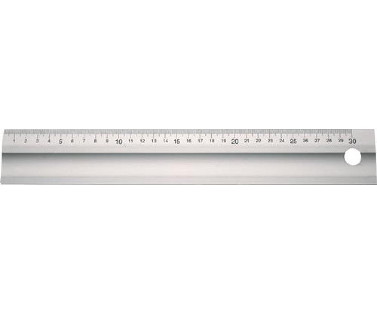 Skala gelasert · aus massivem Aluminium · mit Griffmulde · silberfarbig eloxiert · mit mm-Skalierung