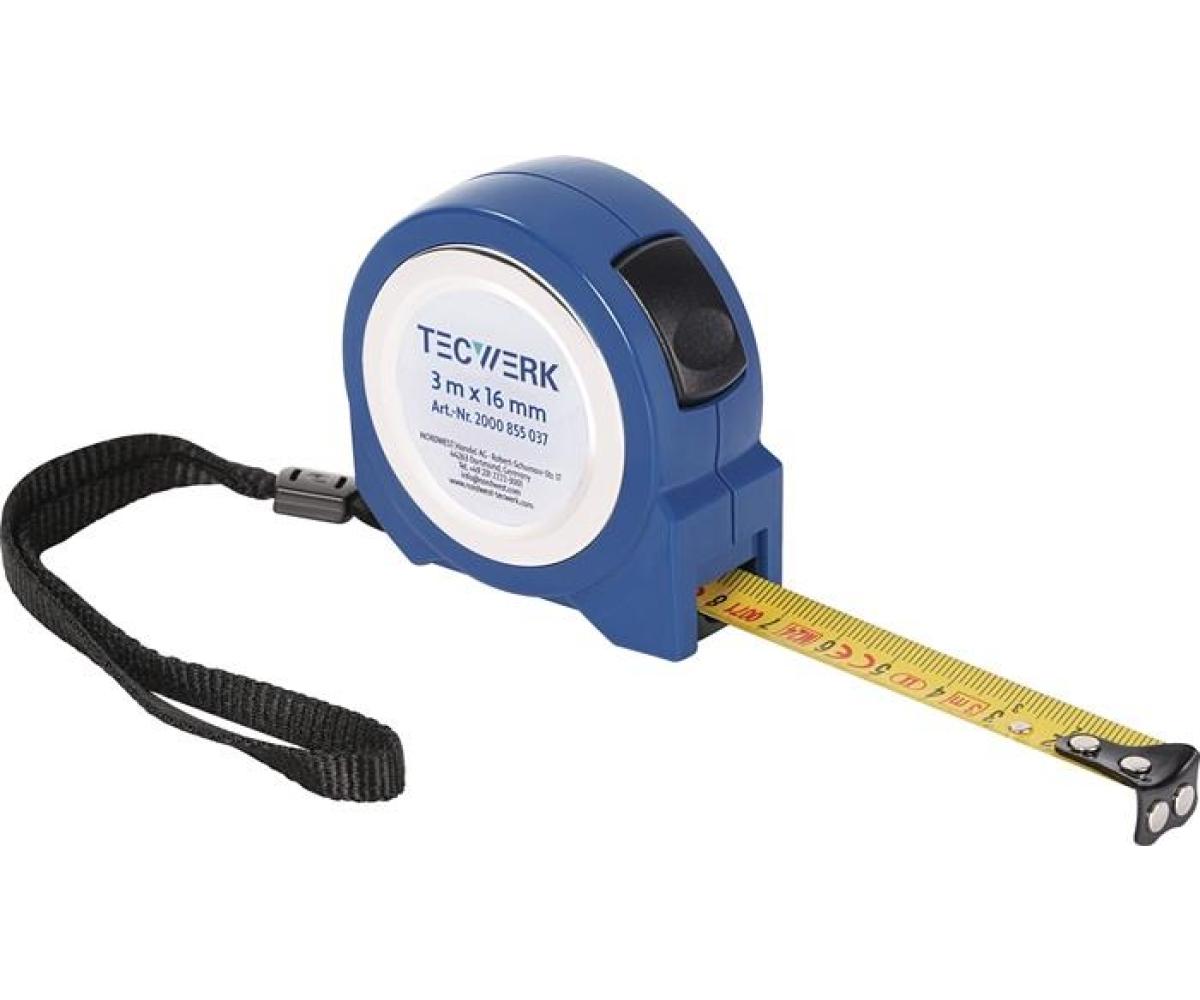 Weitere technische Eigenschaften · Gehäuse: ABS · Genauigkeit: EG II · Taschenrollbandmaß L.5m · B.19mm mm/cm EG II ABS · Selbstarretierung TECWERK · EG-Genauigkeitsklasse II ·