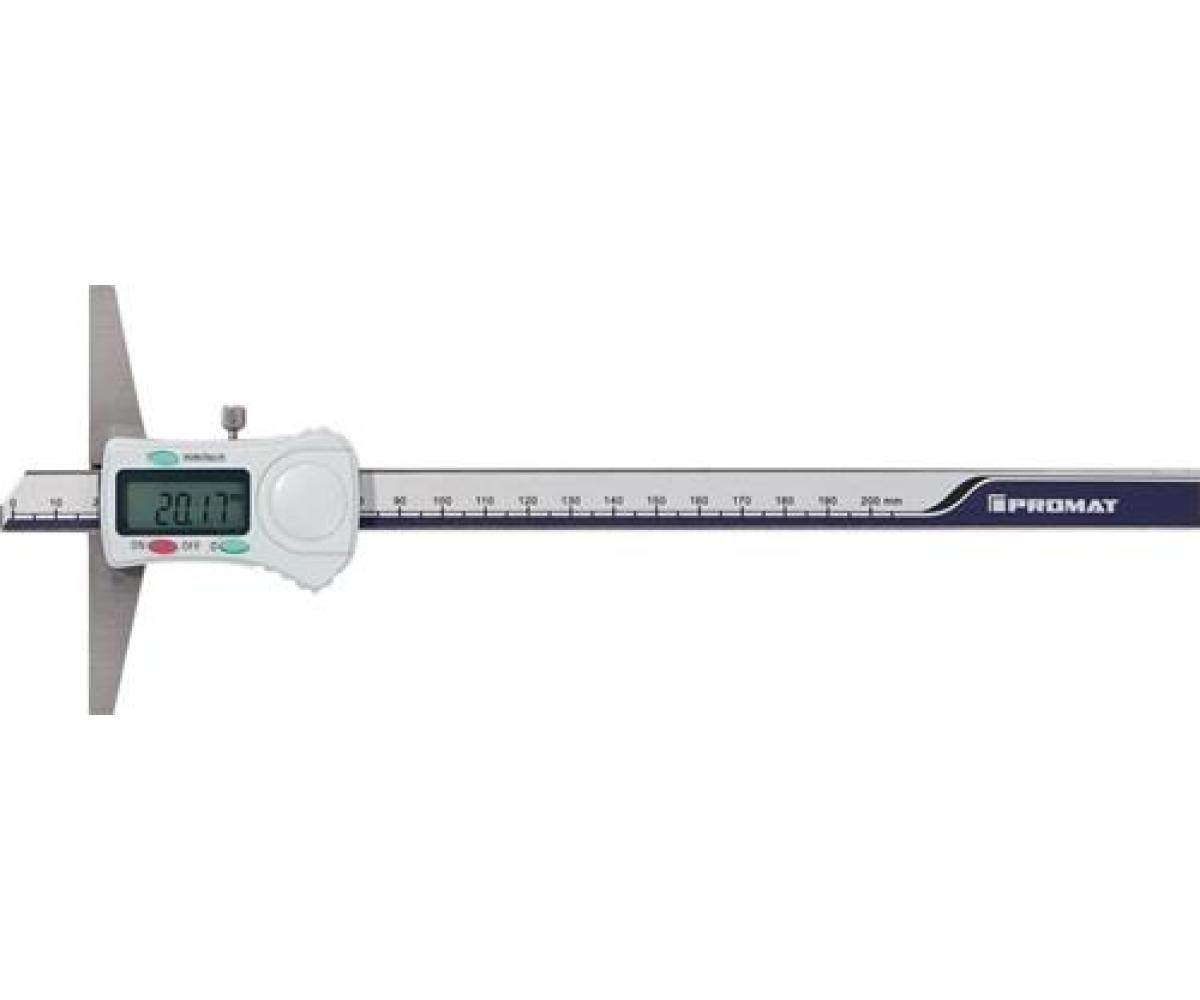 digital · gut ablesbar · Ziffernhöhe 8 mm · das kapazitive Messsystem liegt geschützt gegen Schmutz und Beschädigungen in der Messschiene · Schiene und Messbrücke gehärtet · Batterie-Kontrollanzeige · für Tiefenmessung · mit gerader Messschiene · mit Feststellschraube · Genauigkeit 0,03 mm · Nullpunktsetzung an jeder Stelle · Elektronik schaltet nach ca. 5 Minuten eigenständig ab
