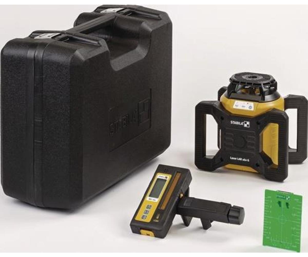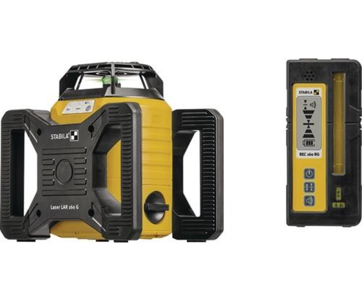 vollautomatischer, motorgesteuerter Rotationslaser – schnelle Selbstnivellierung innerhalb von 20 Sekunden · STABILA GREENBEAM-Technologie für bessere Sichtbarkeit des rotierenden Laserstrahls – grüne Laserstrahlen sind für das menschliche Auge um ein 4-faches sichtbarer als rote Strahlen · vier Laserfunktionen für einen vielseitigen Einsatz – horizontale und vertikale Rotation, Lotfunktion und rechter Winkel (90°) im Vertikalbetrieb · staub- und wasserdicht · stoßabsorbierender STABILA Softgrip-Mantel schützt vor Schlägen – die Laseroptik ist zusätzlich durch den stabilen Gehäusekopf geschützt · einfache Bedienung über drei Bedienknöpfe – Ein/Aus, Tiltmodus, Manueller Modus · Batterie-Schublade – leichter Wechsel auch direkt auf dem Stativ · großer Arbeitsbereich mit Set-Receiver REC 160 RG – bis zu 600 m Durchmesser · zwei im Gehäuse integrierte 5/8“-Gewinde · Zielplatte mit Magnethalterung und Fadenkreuz · Einsatzgebiete: Layout-Arbeiten, Setzen von Trennwänden und Abhängen von Decken, Elektroinstallationsarbeiten – Steckdosen, Schalter und Kabelkanäle horizontal und vertikal zueinander ausrichten, Installationsarbeiten im Industriebau – Einmessen der Ebenen und Ermitteln von Fluchten für den Verlauf von Leitungen und Rohren, Industriemontage – Einmessen und Ausrichten von Regalsystemen in Logistikbereichen · Stativaufnahme 2 x 5/8?