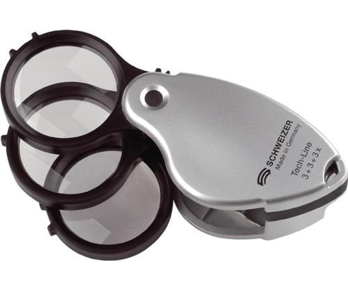 Weitere technische Eigenschaften · Einzellinsen: 2 · Einschlaglupe Tech-Line · Vergr. 3x+5x=8x · Linsen-D.38mm Schweizer ·
