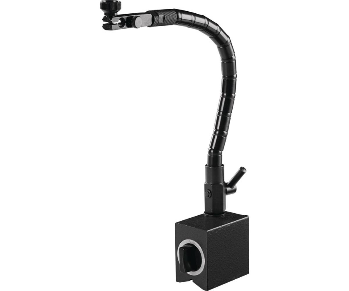 mit flexiblem Stahlgliederarm · mit Feineinstellung und abschaltbarem Magnetfuß mit prismatischer Sohle · große Beweglichkeit durch flexiblen Gliederarm · Messuhraufnahme um 90° schwenkbar · Messuhraufnahme 8 mm H7