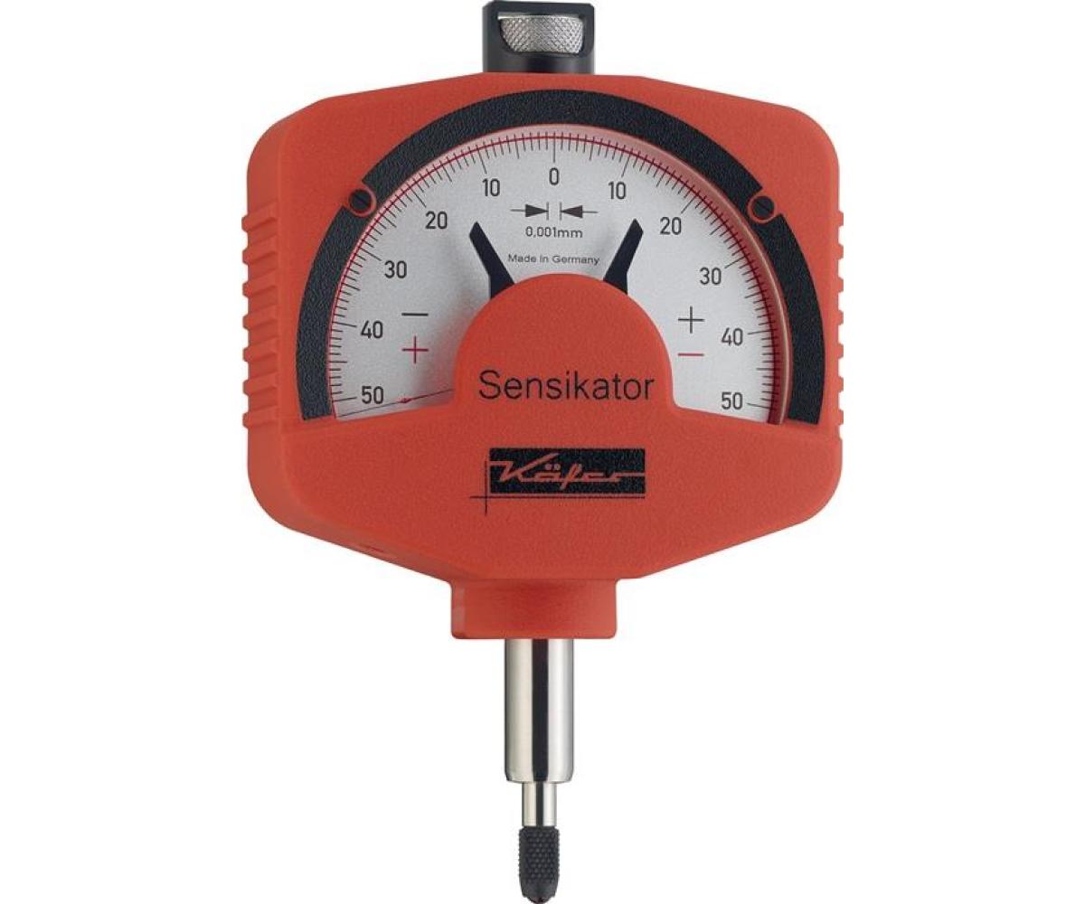 mit geringer Messkraft · mit Ablesung 0,001 mm · mit Stoßschutz · Einspannschaft (Ø 8 mm h6) · Messbolzen präzise geführt · Skala schattenfrei und sehr genau ablesbar · verstellbare Toleranzmarken · Einstellknopf, oben am Gehäuse, ermöglicht einfaches und sicheres Feineinstellen · Lagerstellen der Messwerke sind in präzisen und hochwertigen Lochsteinen gelagert · geprüfte Genauigkeit · Messeinsatz wechselbar · Außenmaß 66x105 mm · Kunststoffgehäuse · nur in vertikaler Lage einsetzbar