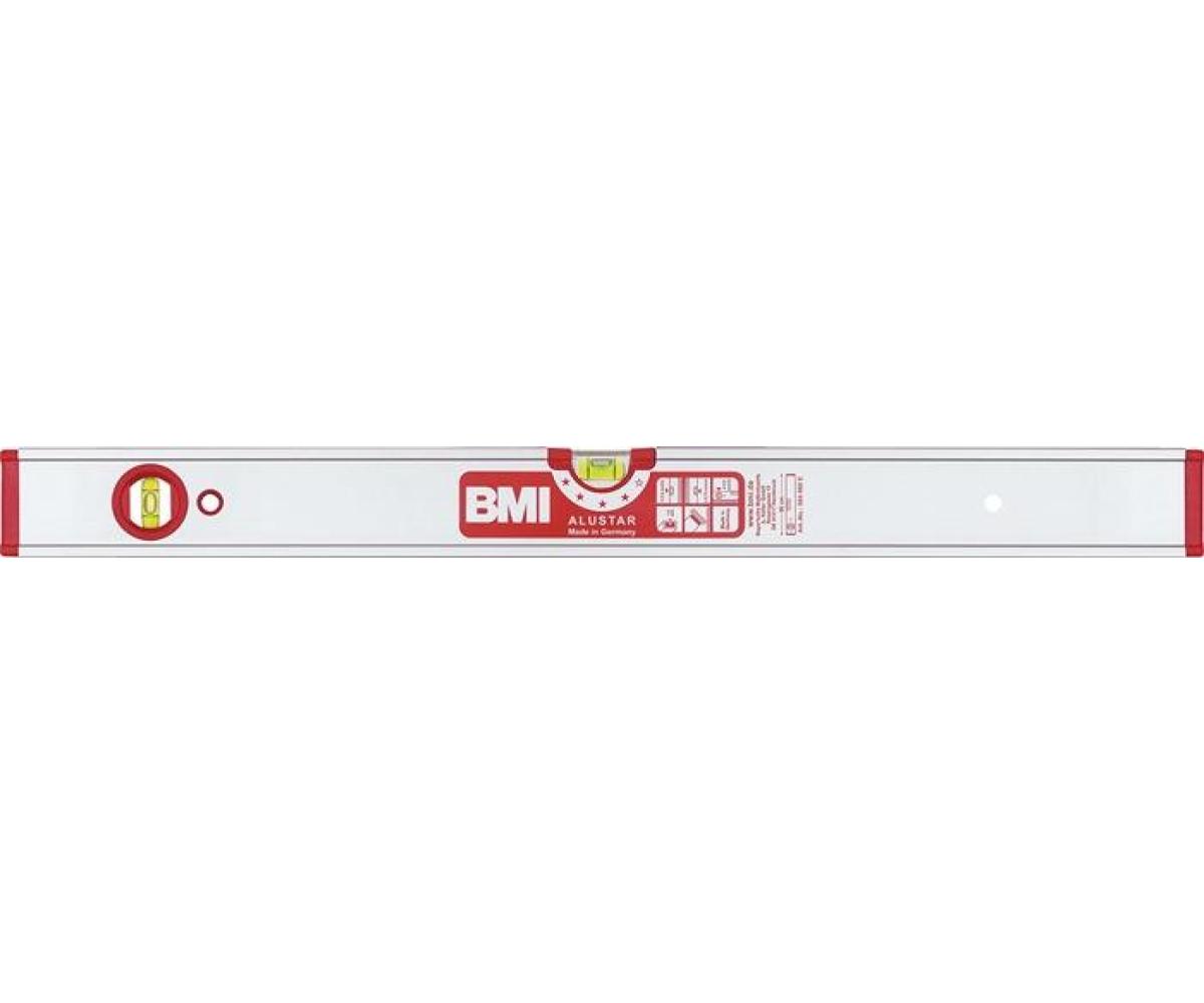 aus Aluminium · glattes Profil · 1 Horizontal- und 1 Vertikallibelle · runde Horizontallibelle mit Lupeneffekt · kantenlose Horizontallibellen schaffen verzerrungsfreie Sicht auf die Libellenblase · hohe Messgenauigkeit durch ultraschallverschweißte Libellen · stoßdämpfende Gummiendkappen · Messgenauigkeit in Normalposition ± 0,5 mm/m, in Umschlagposition ± 0,75 mm/m