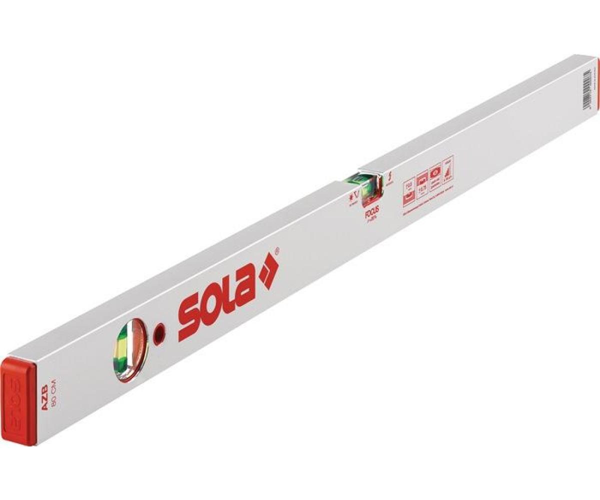 Weitere technische Eigenschaften · Breite: 23mm · Messgenauigkeit Normallage max.: 0,50mm/m · Farbe: silber · Messgenauigkeit Umschlaglage max.: 0,75mm/m · Genauigkeit: 0,5mm/m · Wasserwaage AZB 80cm · Alu.silber 0,5 mm/m 0,50 · mm/m SOLA ·
