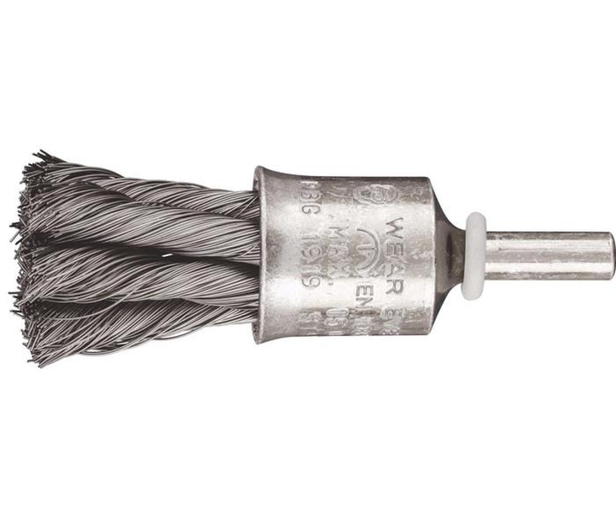 für mittelschwere Bürstarbeiten wie Entgraten, Reinigen, Entrosten und Entzundern sowie zum Entfernen von Schweißspritzern geeignet · Besatzmaterial Stahldraht verfügt über eine hohe Zug- und Biegewechselfestigkeit · optimale Abnutzung des Drahtes sowie eine hohe Standzeit, auch bei extremen Bürstanwendungen. Stahldraht hält Temperaturen bis 300 °C stand. Schaft-Ø 6 mm