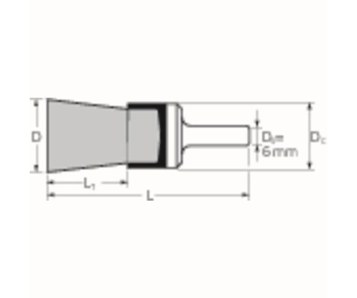 für mittelschwere Bürstarbeiten wie Entgraten, Reinigen, Entrosten und Entzundern sowie zum Entfernen von Schweißspritzern geeignet · Besatzmaterial Stahldraht verfügt über eine hohe Zug- und Biegewechselfestigkeit · optimale Abnutzung des Drahtes sowie eine hohe Standzeit, auch bei extremen Bürstanwendungen. Stahldraht hält Temperaturen bis 300 °C stand. Schaft-Ø 6 mm
