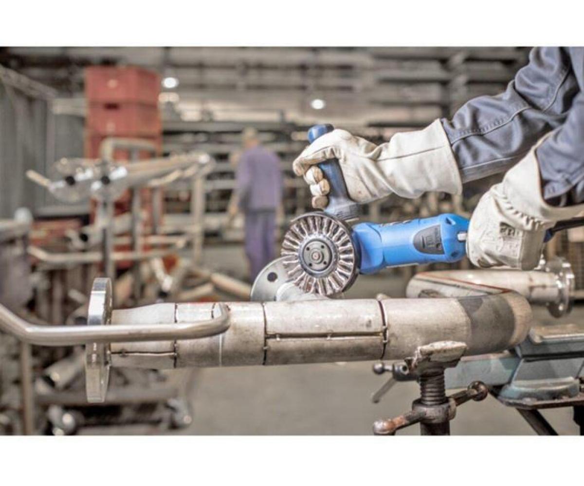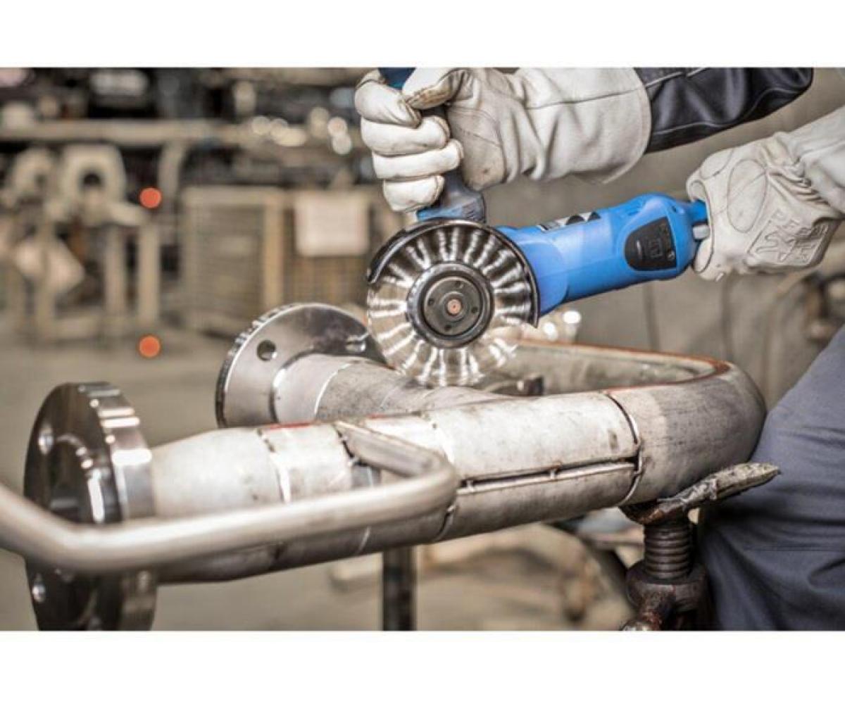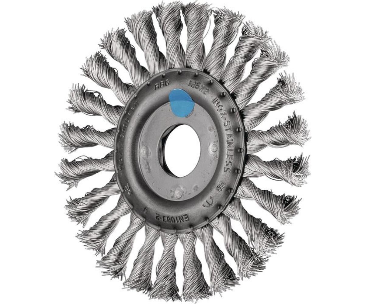 für schwere Bürstarbeiten im Metallbau wie Entzundern, Entrosten, Entgraten, Putzen von Schweißnähten und Entfernen von Kleberresten und Schweißspritzern· sehr gute Korrosionsbeständigkeit bei optimaler Standzeit · INOX-Besatz blau für den Einsatz auf allen Edelstählen (INOX), wie z. B. V4A. Edelstahldraht (INOX) hält Temperaturen bis 450 °C stand · Bohrung 22,2 mm Ø