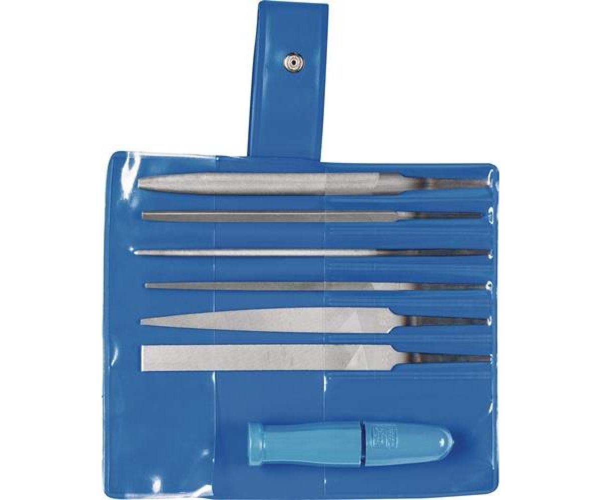 Weitere technische Eigenschaften · Inhalt: 7-teilig · Antriebsart: Handeinsatz · Bearbeitbare Werkstoffe: Aluminium, Messing, Stahlguss, Kupfer, Grau-/Sphäroguss (GG/GJL, GGG/GJS), Stahl, Stahlguss, Stähle bis 1.200 N/mm² (< 38 HRC), Zink · Bearbeitungsaufgaben: Schärfen, Flächenbearbeitung, Kantenbearbeitung (Anfasen, Verrunden), Verrunden, Schlichten, Entgraten, Anfasen · PFERD Typ: 265 A · Vorteile: Vielseitig einsetzbar. Sehr handliche Auslegung zur Bearbeitung filigraner Bauteile. · Schlüsselfeilen-Set 265 A · 100 H2 L.100mm Hieb 2 · PFERD ·
