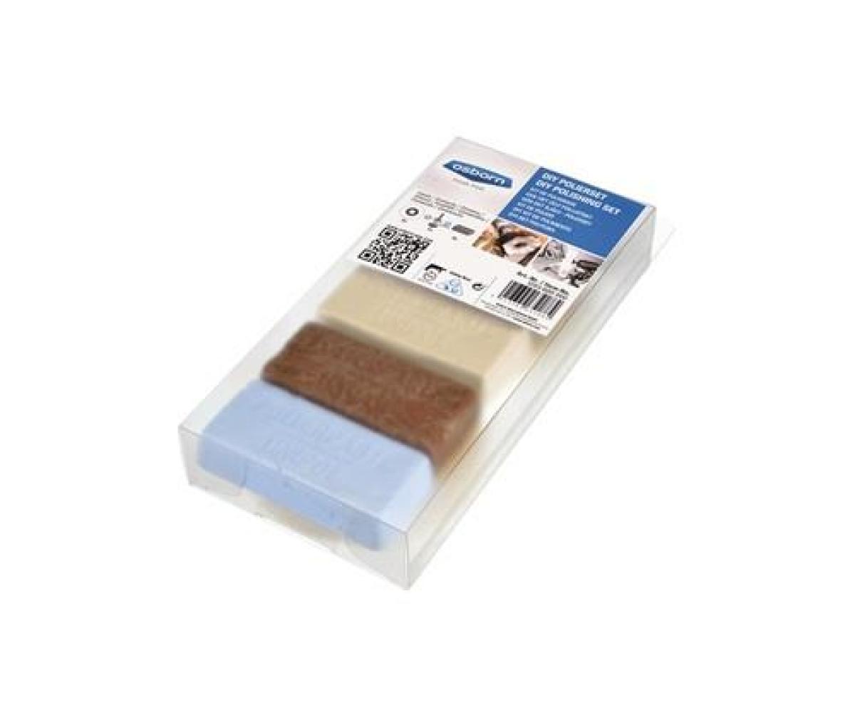 Weitere technische Eigenschaften · Ausführung: 6-teilig · max. Drehzahl: 4000min-¹ · Polierset 6-tlg.D.85/80mm · f.Bohrmaschine OSBORN · Inhalt: 1 Filzscheibe (Polieren), 1 Faltenringtuch (hochglanzpolieren), je 1 Polierpaste weiß, braun und blau, 1 Spannschaft Ø 6 mm ·