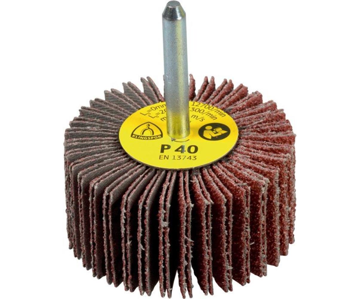 Weitere technische Eigenschaften · Farbe: braun · Schaft-Ø: 6mm · Anwendungsgebiet: Edelstahl, Metall Universal · Bindung: Kunstharz · Breite: 10mm · Höchstgeschwindigkeit: 40m/s · Nutzungsart: Geradschleifer, Bohrmaschine, Biegsame Welle · Verpackungsart: Karton · Fächerschleifer KM 613 · Ø30xH10mm K.120 Korund · Schaft-D.6mm KLINGSPOR ·