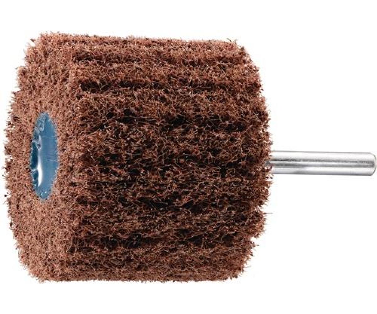 Korund A · Anordnung des Vliesmaterials radial in Lamellenform, wobei bei diesen Polierkörpern die Lamellen extrem dicht gepackt sind und dadurch eine hohe Standzeit erreicht wird · Schaft-Ø 6 mm