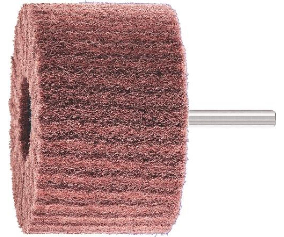 Korund A · Anordnung des Vliesmaterials radial in Lamellenform, wobei bei diesen Polierkörpern die Lamellen extrem dicht gepackt sind und dadurch eine hohe Standzeit erreicht wird · Schaft-Ø 6 mm