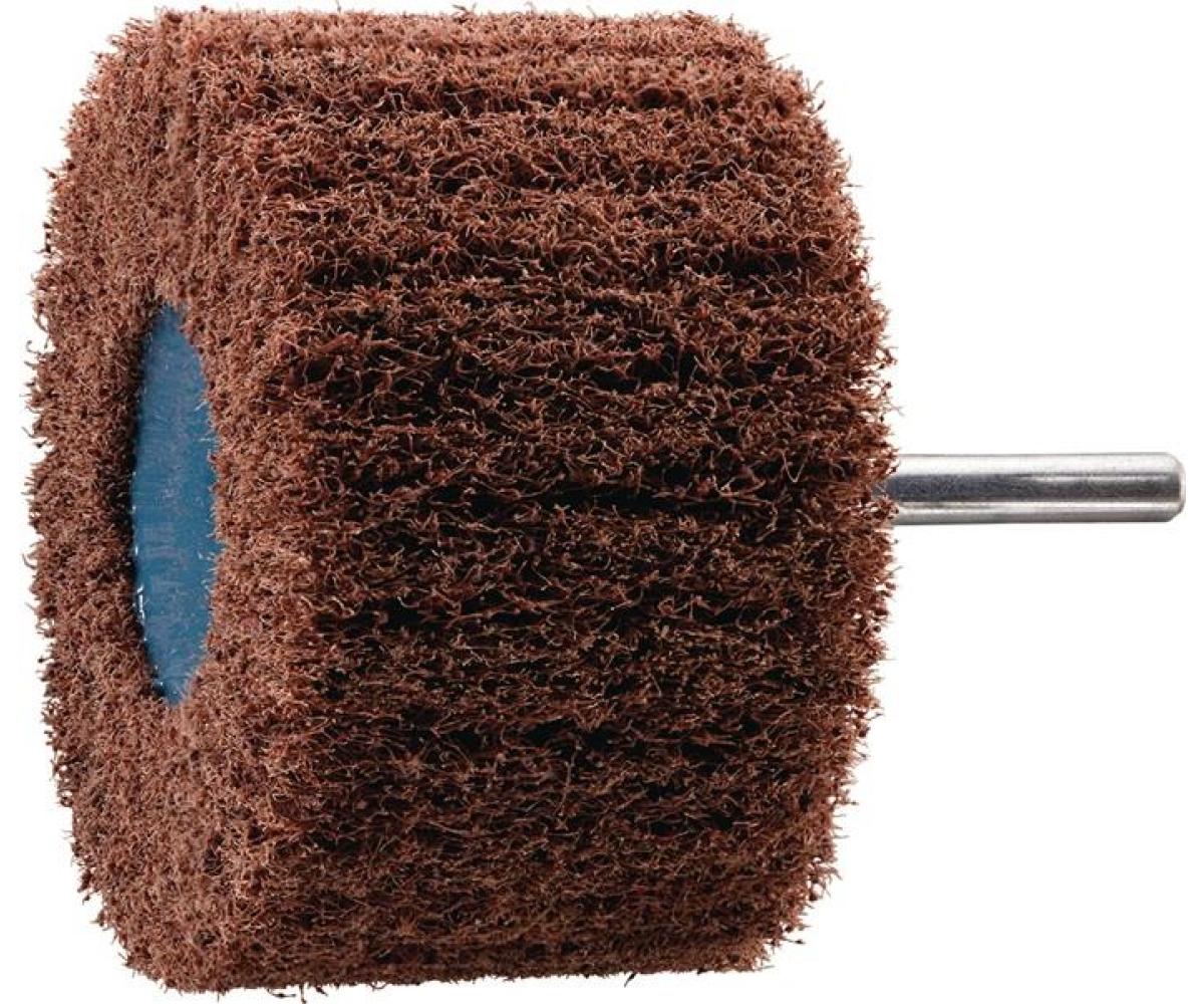 Korund A · Anordnung des Vliesmaterials radial in Lamellenform, wobei bei diesen Polierkörpern die Lamellen extrem dicht gepackt sind und dadurch eine hohe Standzeit erreicht wird · Schaft-Ø 6 mm