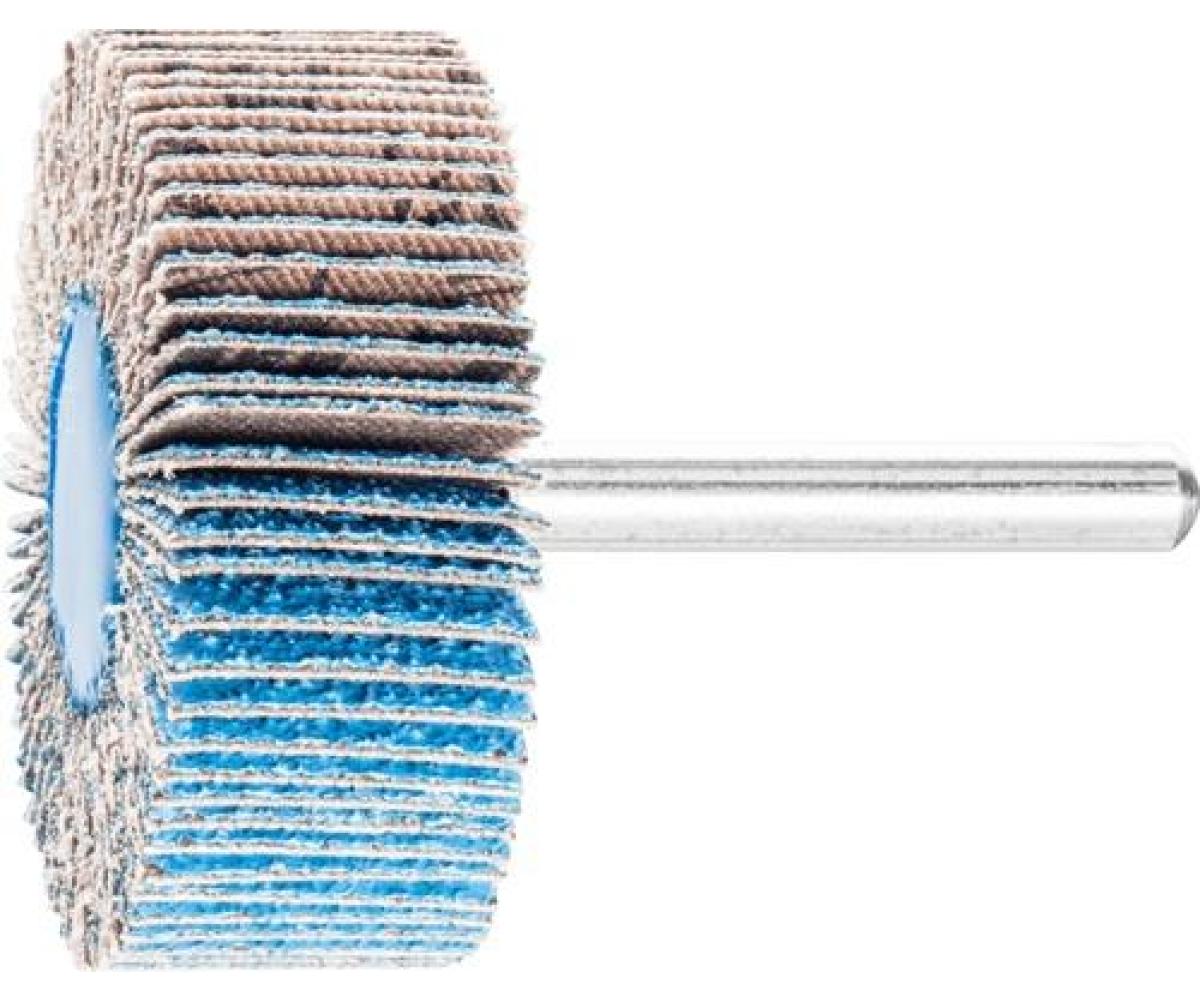 Zirkonkorund · für die Bearbeitung rostfreier Stähle und hochwarmfester Legierungen · hohe Schleifleistung · kein Zusetzen der Lamellen · für grobe Schleifaufgaben bei hoher Zerspanungsleistung und kühlem Schliff · schleifaktive Zusätze im Belag erzielen eine deutlich höhere Abtragsleistung, verhindern das Zusetzen und bewirken einen kühleren Schliff · Schaft-Ø 6 mm