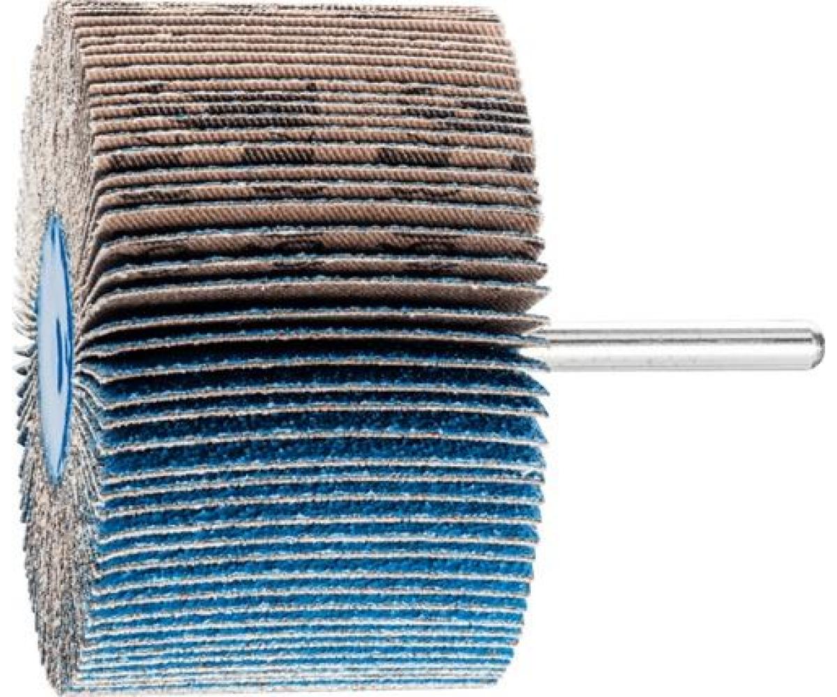 Zirkonkorund · für die Bearbeitung rostfreier Stähle und hochwarmfester Legierungen · hohe Schleifleistung · kein Zusetzen der Lamellen · für grobe Schleifaufgaben bei hoher Zerspanungsleistung und kühlem Schliff · schleifaktive Zusätze im Belag erzielen eine deutlich höhere Abtragsleistung, verhindern das Zusetzen und bewirken einen kühleren Schliff · Schaft-Ø 6 mm