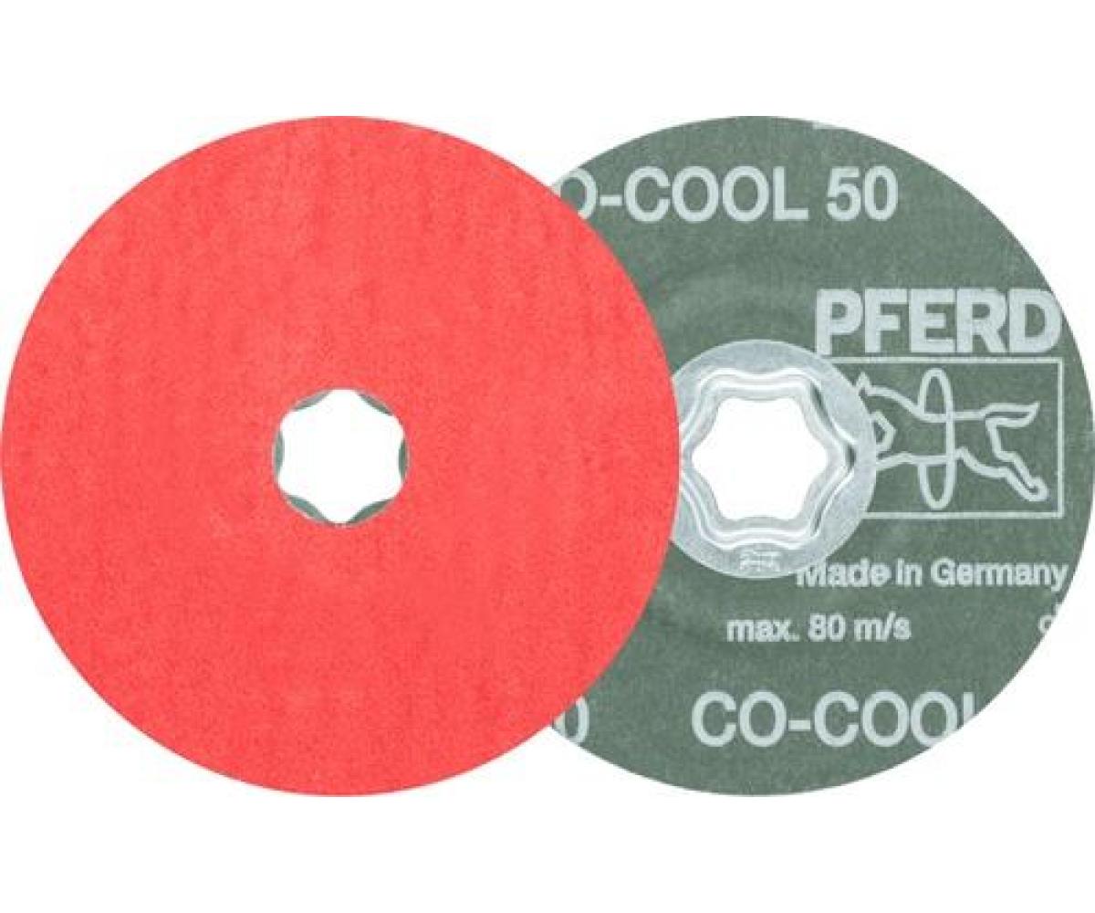 Weitere technische Eigenschaften · Antriebsart: Akkuwinkelschleifer, Winkelschleifer · Anwendungsempfehlung: Für den Werkstoff geeignetes Schleiföl verwenden, um die Standzeit und Schleifleistung der Werkzeuge deutlich zu erhöhen. COMBICLICK-Fiberschleifer mit dem COMBICLICK-Stützteller auf handelsüblichen Winkelschleifern einsetzen. · Bearbeitbare Werkstoffe: Edelstahl (INOX), Nickelbasislegierungen (z. B. Inconell und Hasteloy), Grau-/Sphäroguss (GG/GJL, GGG/GJS), Titan, Kobaltbasislegierungen, Bronze, Temperguss · Bestellhinweise: COMBICLICK-Stützteller bitte separat bestellen. · Hinweis: PFERDERGONOMICS empfiehlt COMBICLICK als innovative Werkzeuglösung, um die beim Einsatz entstehende Vibrations-, Lärm- und Staubentwicklung nachhaltig zu senken und den Arbeitskomfort zu verbessern. PFERDEFFICIENCY empfiehlt COMBICLICK für langes, ermüdungsarmes und ressourcenschonendes Arbeiten mit perfekten Ergebnissen in kürzester Zeit. Durch das patentierte Schnellspannsystem werden Werkzeugwechsel- und Rüstzeiten reduziert. · Sicherheitshinweise: Die maximal zulässige Umfangsgeschwindigkeit beträgt 80 m/s. Die angegebene maximal zulässige Drehzahl darf aus Sicherheitsgründen nie überschritten werden. · Vorteile: Extrem schneller und einfacher Werkzeugwechsel reduziert die Prozesskosten. Mit COMBICLICK werden Kratzer durch hervorstehende Spannteile vermieden und eine sehr hohe Ausnutzung des zur Verfügung stehenden Schleifmittels erzielt. Hohe Wirtschaftlichkeit durch hohe Standzeit und sehr hohe Abtragsleistung. Innovatives Schnellspannsystem garantiert komfortable Handhabung und kühlen Schliff. Gleichmäßiges Schliffbild durch hochwertige Schleifmittel. · Fiberscheibe COMBICLICK · CO-COOL D.115mm K.50 · INOX/Alu.Keramikkorn ·