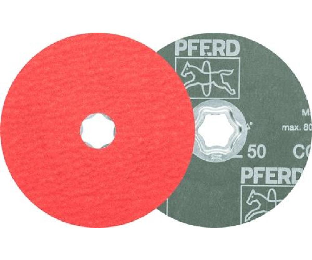 Weitere technische Eigenschaften · Antriebsart: Akkuwinkelschleifer, Winkelschleifer · Anwendungsempfehlung: Besonders weiches und flexibles Schleifverhalten im Stirnschliff. Für den Werkstoff geeignetes Schleiföl verwenden, um die Standzeit und Schleifleistung der Werkzeuge deutlich zu erhöhen. COMBICLICK-Fiberschleifer mit dem COMBICLICK-Stützteller auf handelsüblichen Winkelschleifern einsetzen. · Bearbeitbare Werkstoffe: Grau-/Sphäroguss (GG/GJL, GGG/GJS), Edelstahl (INOX), Nickelbasislegierungen (z. B. Inconell und Hasteloy), Kobaltbasislegierungen, Bronze, Temperguss, Titan · Bestellhinweise: COMBICLICK-Stützteller bitte separat bestellen. · Hinweis: PFERDERGONOMICS empfiehlt COMBICLICK als innovative Werkzeuglösung, um die beim Einsatz entstehende Vibrations-, Lärm- und Staubentwicklung nachhaltig zu senken und den Arbeitskomfort zu verbessern. PFERDEFFICIENCY empfiehlt COMBICLICK für langes, ermüdungsarmes und ressourcenschonendes Arbeiten mit perfekten Ergebnissen in kürzester Zeit. Durch das patentierte Schnellspannsystem werden Werkzeugwechsel- und Rüstzeiten reduziert. · Sicherheitshinweise: Die maximal zulässige Umfangsgeschwindigkeit beträgt 80 m/s. Die angegebene maximal zulässige Drehzahl darf aus Sicherheitsgründen nie überschritten werden. · Vorteile: Mit COMBICLICK werden Kratzer durch hervorstehende Spannteile vermieden und eine sehr hohe Ausnutzung des zur Verfügung stehenden Schleifmittels erzielt. Extrem schneller und einfacher Werkzeugwechsel reduziert die Prozesskosten. Gleichmäßiges Schliffbild durch hochwertige Schleifmittel. Hohe Wirtschaftlichkeit durch hohe Standzeit und sehr hohe Abtragsleistung. Innovatives Schnellspannsystem garantiert komfortable Handhabung und kühlen Schliff. · Fiberscheibe COMBICLICK · CO-COOL D.125mm K.50 · INOX/Alu.Keramikkorn ·