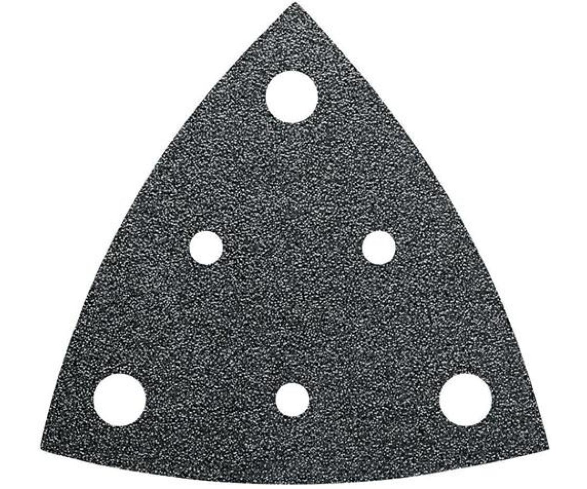 Korund-Schleifkörner und Vollkunstharzbindung garantieren hohe Abtragsleistung, geringes Zusetzen und hohe Standzeit · universeller Einsatz auf nahezu allen Materialien · für den Einsatz mit gelochter Schleifplatte und Staubabsaugung · Klettschnellbefestigung · Kantenlänge 80 mm · (Pack à 5 Stück)