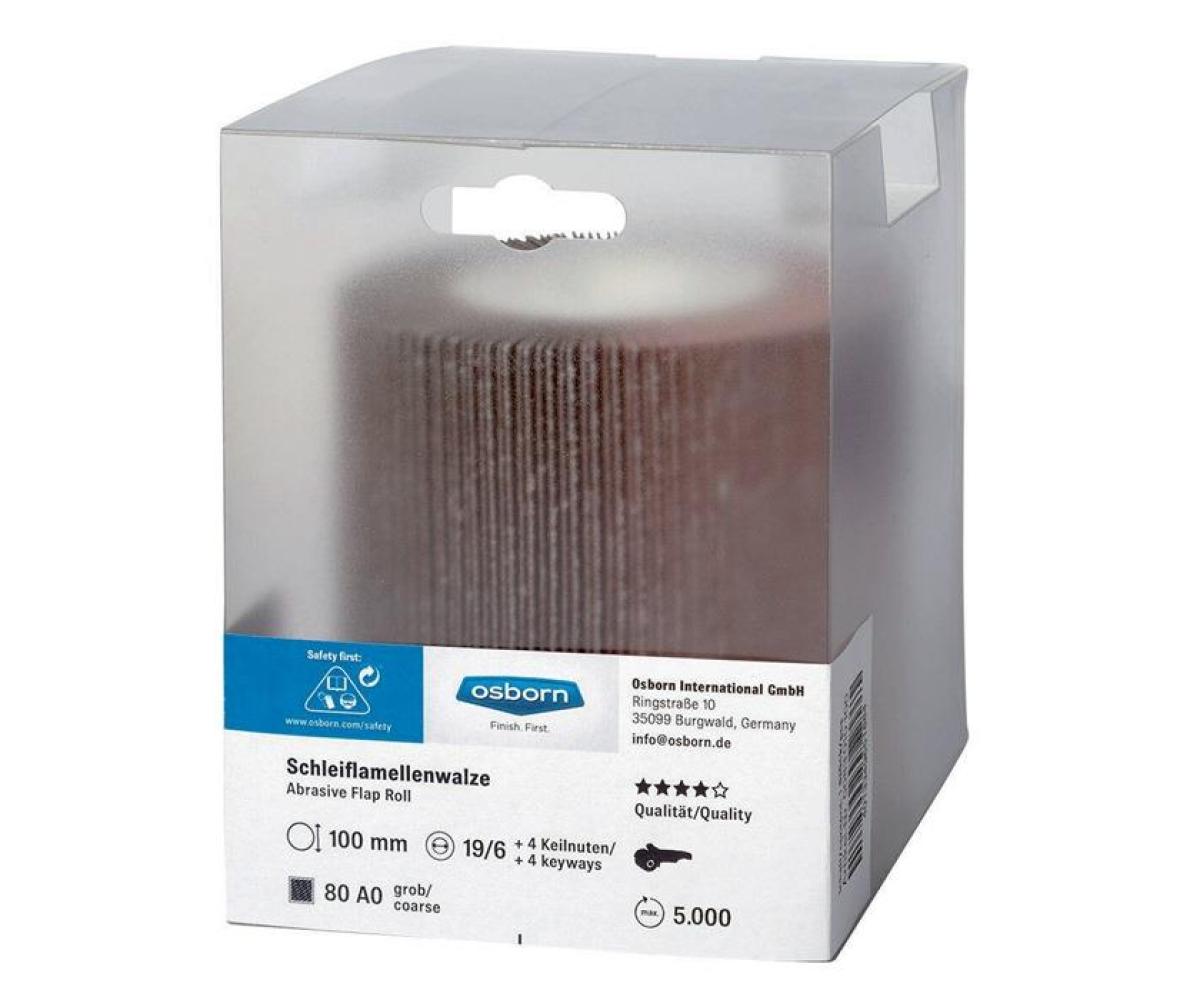 Weitere technische Eigenschaften · Bohrung: 19 mm · Durchmesser: 100 mm · Drehzahl max. zulässig: 5700 U/Min · Schleiflamellenwalze · Superior 240 m.4 · Keilnuten Ø100xB100mm ·