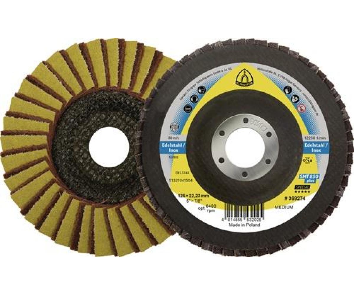 Weitere technische Eigenschaften · Bohrung: 22,23mm · Fächerscheibe SMT 850 · Kombi D.125mm K.60 · kon.INOX ZK KLINGSPOR ·