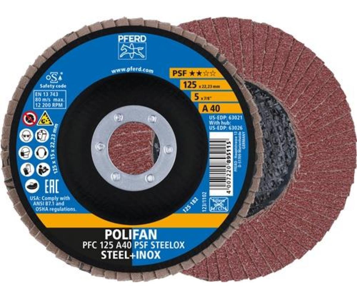 Weitere technische Eigenschaften · Bohrung: 22,23mm · Fächerscheibe POLIFAN A · PSF STEELOX D.125mm K.40 · kon.Stahl/INOX NK PFERD ·
