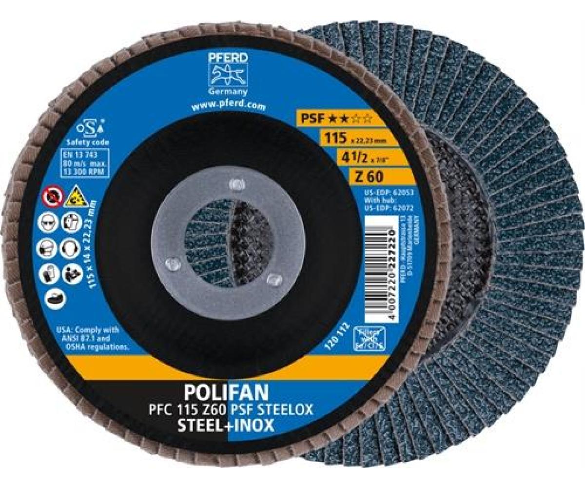 Weitere technische Eigenschaften · Bohrung: 22,23mm · Fächerscheibe POLIFAN Z · PSF STEELOX D.115mm K.60 · kon.STA/INOX ZK PFERD ·