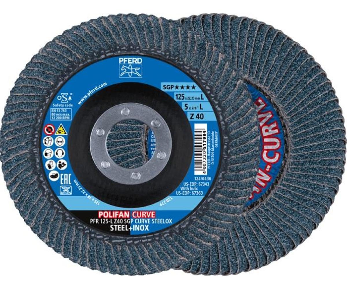 Weitere technische Eigenschaften · Bohrung: 22,23mm · Fächerscheibe POLIFAN Z · SGP CURVE STEELOX D.125mm · K.40 INOX ZK Ausf.L PFERD ·