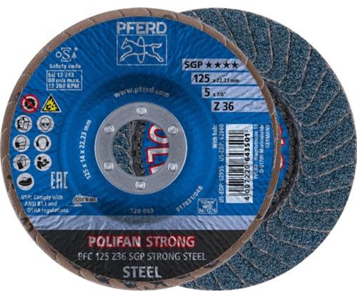 Weitere technische Eigenschaften · Bohrung: 22,23mm · Fächerscheibe POLIFAN Z · SGP STRONG STEEL D.125mm · K.36 kon.INOX ZK PFERD ·