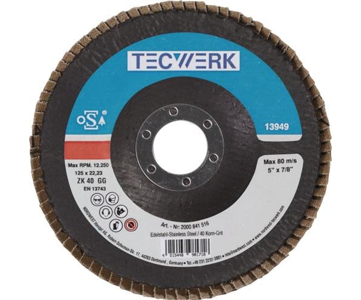 Weitere technische Eigenschaften · Bohrung: 22,23mm · Fächerscheibe D.125mm · K.60 fl.INOX ZK TECWERK ·