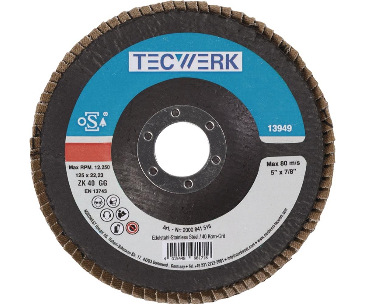 Weitere technische Eigenschaften · Bohrung: 22,23mm · Fächerscheibe D.125mm · K.60 kon.INOX ZK TECWERK ·