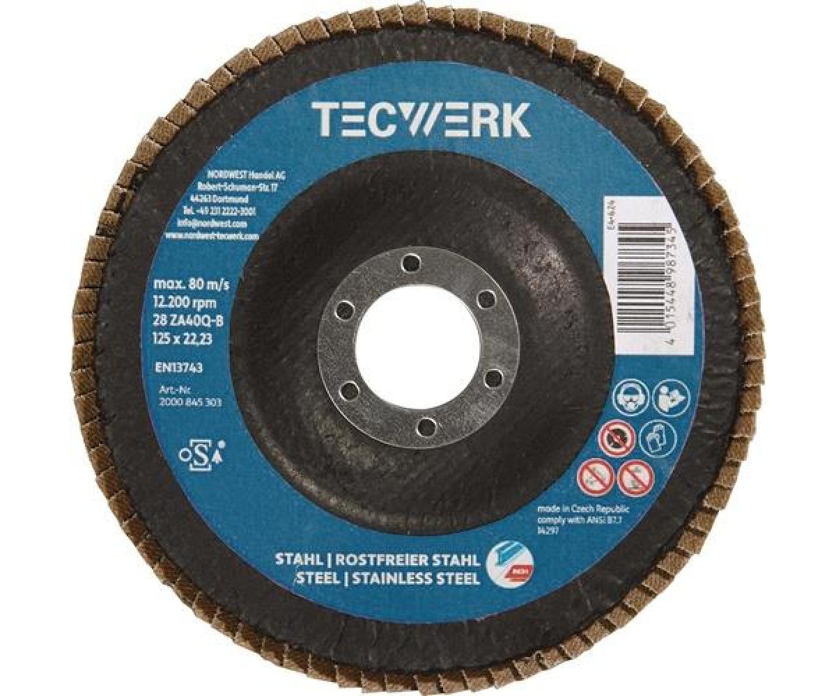 Weitere technische Eigenschaften · Bohrung: 22,23mm · Premium Fächerscheibe · 2in1 D.125mm K.60 · fl.INOX/Stahl ZK TECWERK ·