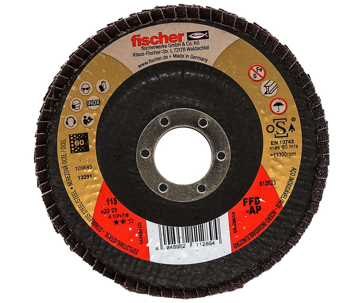 Die fischer Lamellenschleifscheibe FFD-AP ist eine leistungsstarke Zirkon-Fächerschleifscheibe für das Bearbeiten von Stahl und Edelstahl. Das selbstschärfende Zirkonkorund-Schleifkorn in Verbindung mit der optimierten Bindungsmatrix garantiert eine lange Lebensdauer bei hoher Zerspanungsleistung.