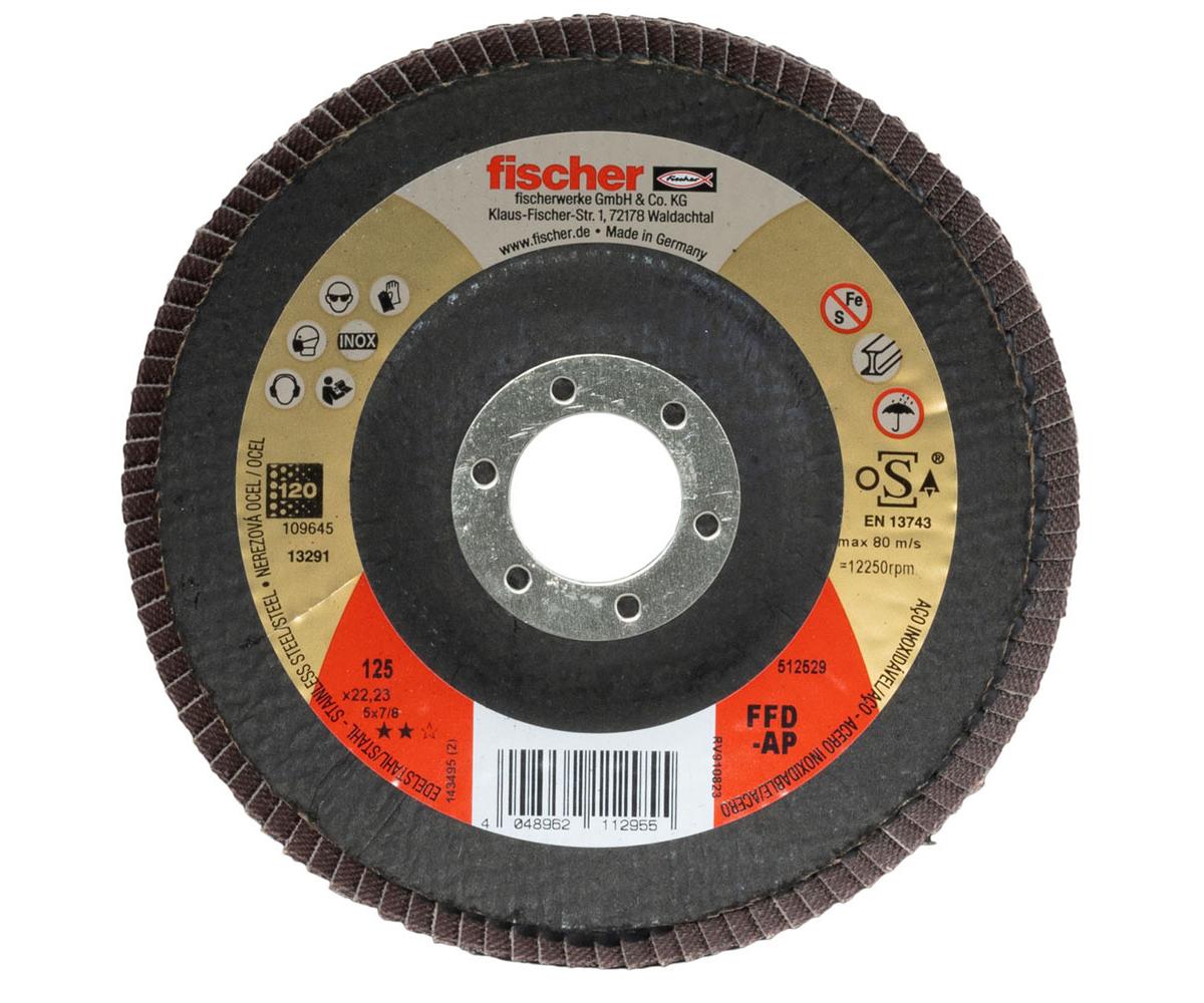 Die fischer Lamellenschleifscheibe FFD-AP ist eine leistungsstarke Zirkon-Fächerschleifscheibe für das Bearbeiten von Stahl und Edelstahl. Das selbstschärfende Zirkonkorund-Schleifkorn in Verbindung mit der optimierten Bindungsmatrix garantiert eine lange Lebensdauer bei hoher Zerspanungsleistung.