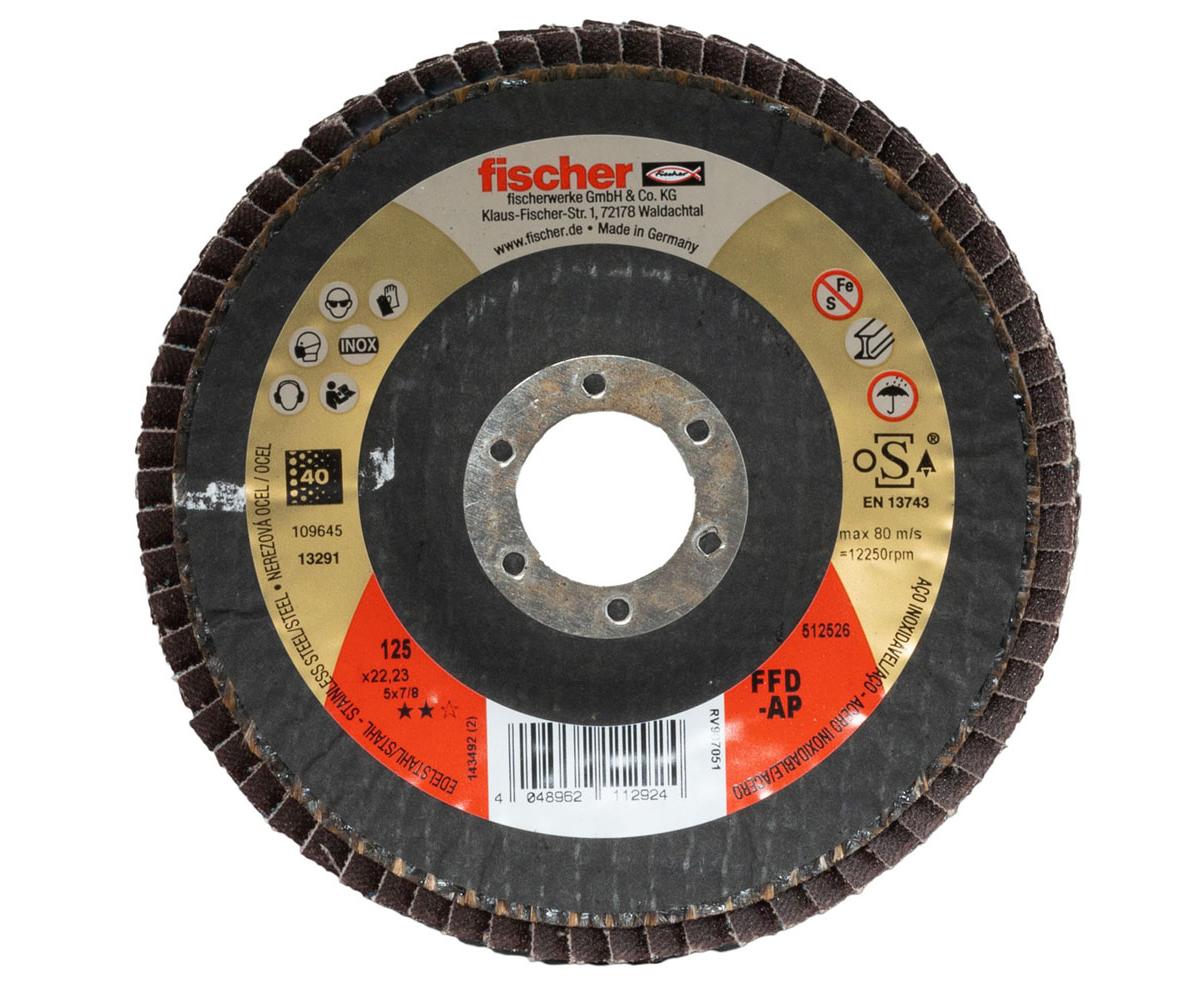 Die fischer Lamellenschleifscheibe FFD-AP ist eine leistungsstarke Zirkon-Fächerschleifscheibe für das Bearbeiten von Stahl und Edelstahl. Das selbstschärfende Zirkonkorund-Schleifkorn in Verbindung mit der optimierten Bindungsmatrix garantiert eine lange Lebensdauer bei hoher Zerspanungsleistung.
