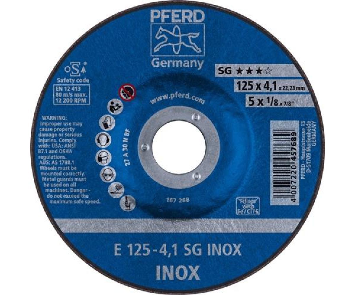 Schruppscheibe SG INOX · D125xS4,1mm gekr.INOX · Bohr.22,23mm PFERD ·